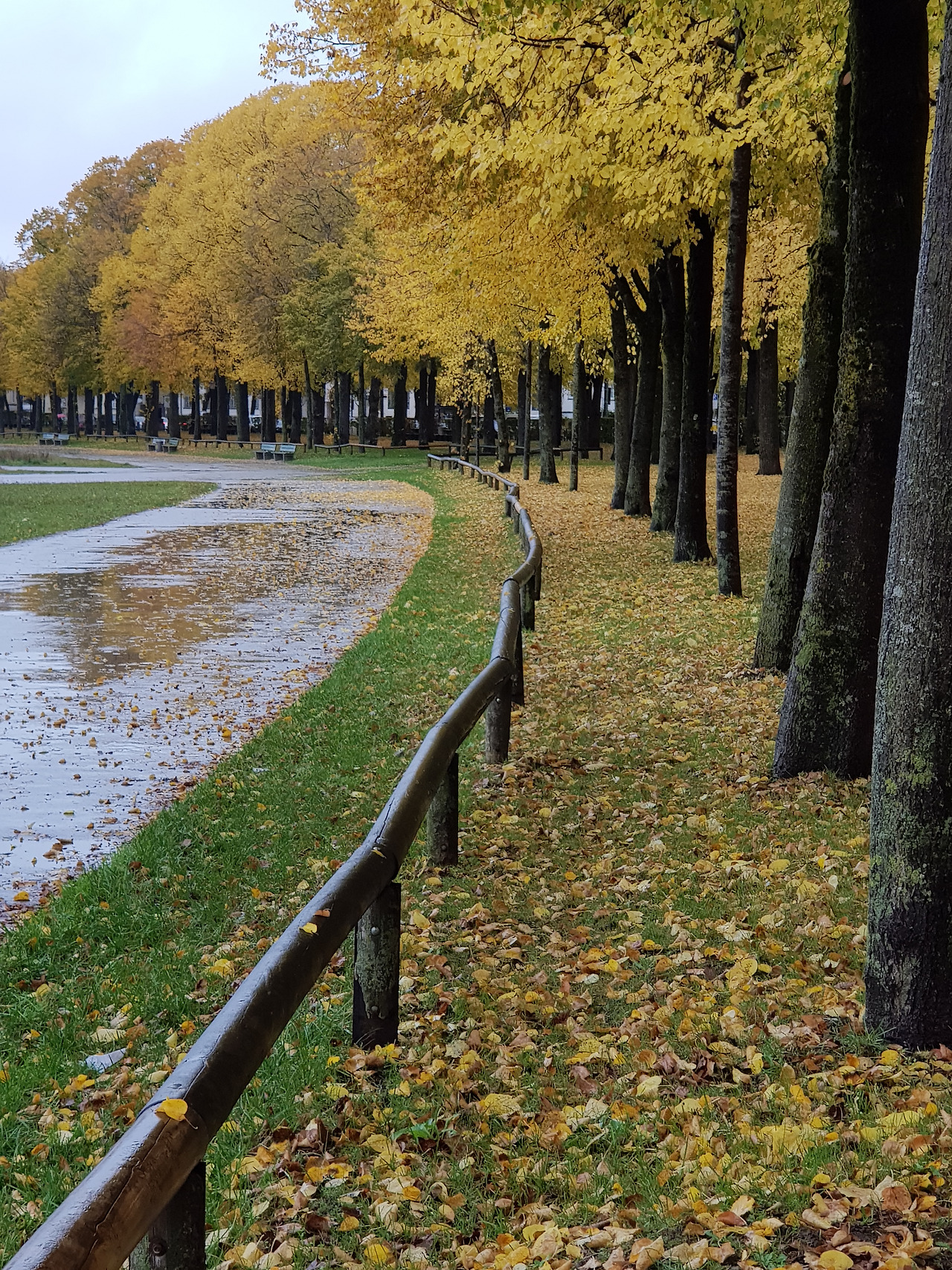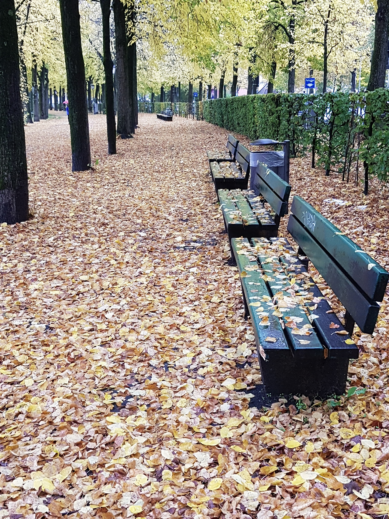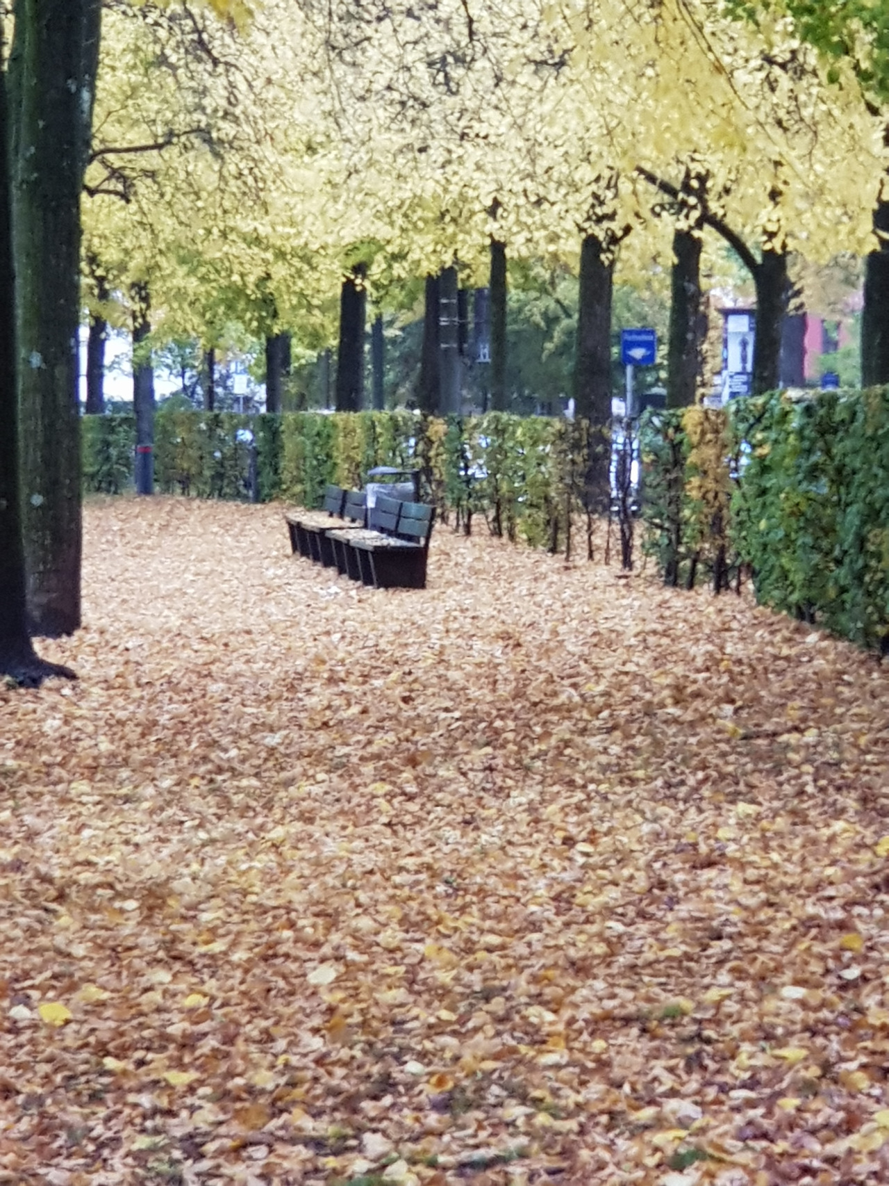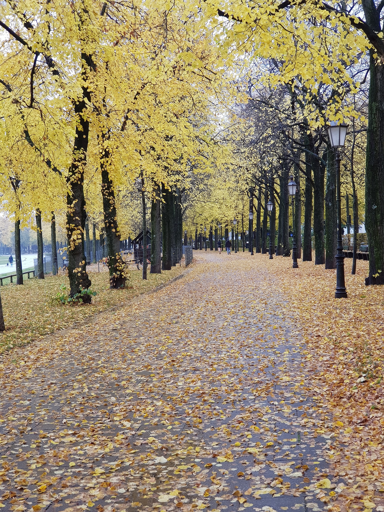 아이와는 한글학교 지하철 역앞에서 헤어졌다. 토요일 오전3시간의 자유가 손안에 쥐어지는 짜릿한 순간이었다. 무엇을 할 것인가. 평소대로 카페로 직행하지 못한 건 노란 물결 때문이었다. 한글학교에서 옥토버 페스트 장소는 멀지 않다. 지하철 역에서 한 블록만 걸어가면 된다. 그 다음 눈 앞에 펼쳐질 들판은 테레지엔 비제 Theresienwiese.지금까지 왜 그 생각을 못했을까. 그곳의 산책길을잊고 살다니. 맑은 날들 다 지나고 비 오는 어제서야 생각이 나다니. 비 오는 날 사진이 제일 차분하리란 내 예상은 들어맞았다. 저 길들, 저 낙엽들을 못 봤으면 어쩔 뻔했나!