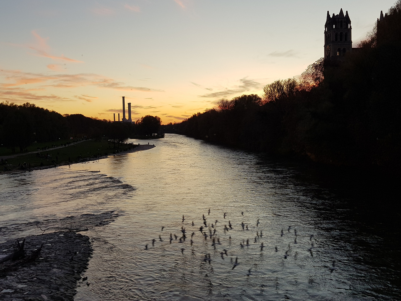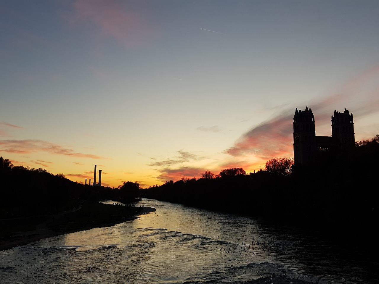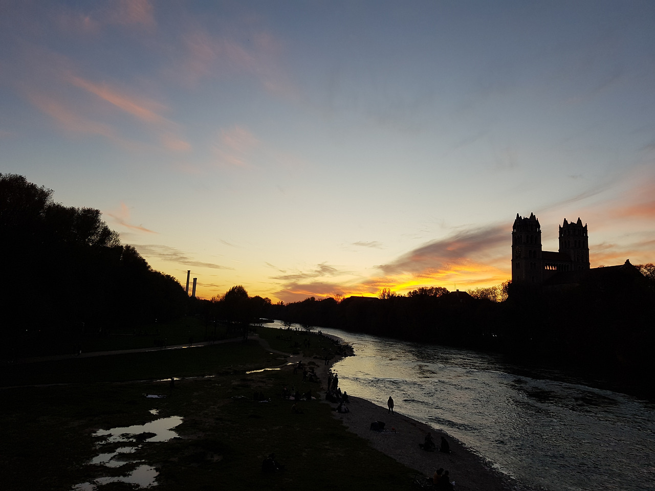 시월의 마지막 날. 뮌헨의 이자르 강에서 석양을 보았다.