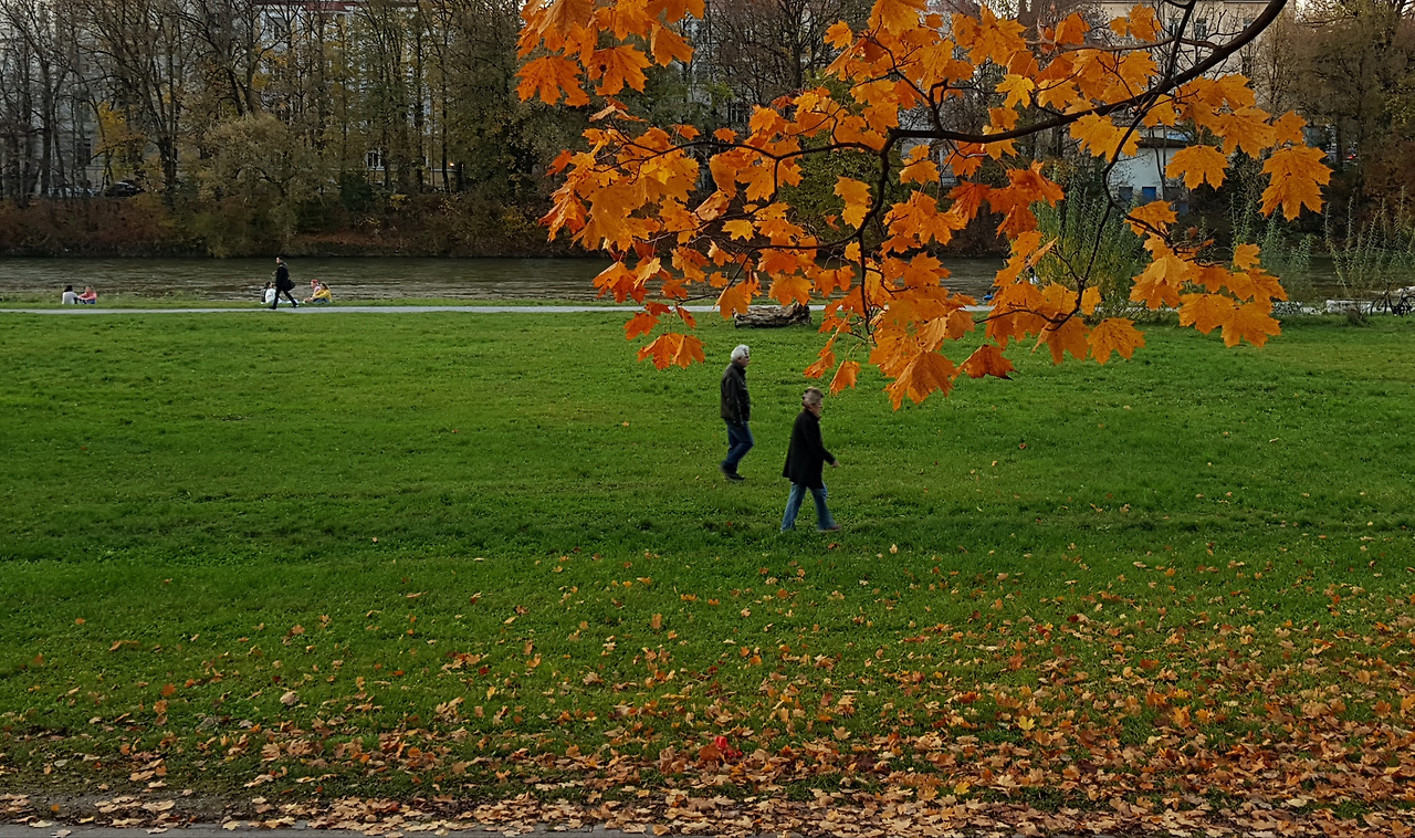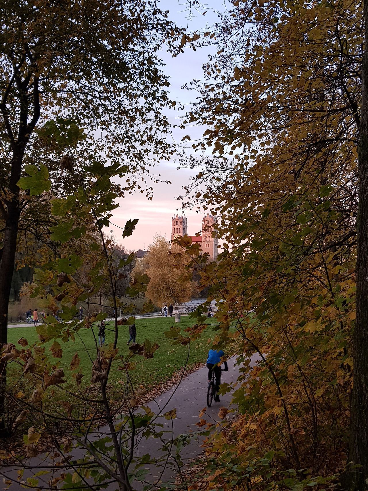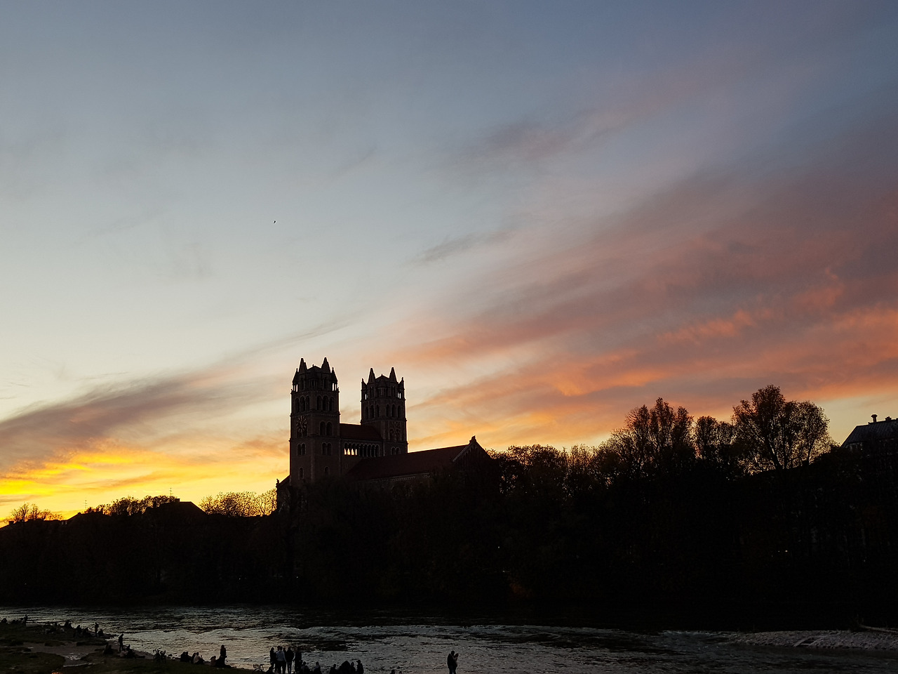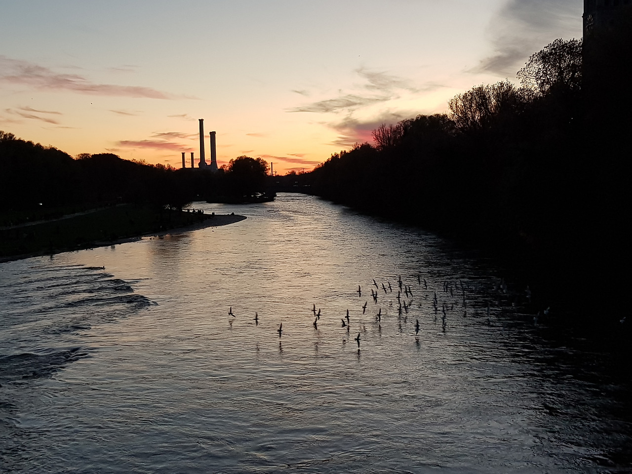 시월의 마지막 날. 뮌헨의 이자르 강에서 석양을 보았다.