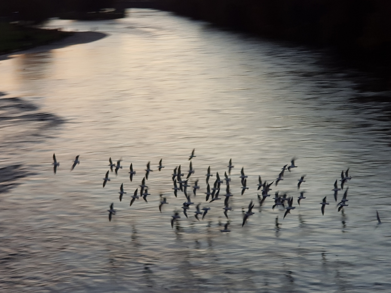 어제는 새들이 찬조 출연까지 준비하고 있었어요. 흰 철새들이었답니다. 처음 보는 새들의 군무였어요. 라이브로 장장 10분도 넘게요. 남쪽 나라로 대이동을 하기 직전 리허설 같았어요. 낙하는 다리 쪽에서 시작합니다. 강물 위로 아슬아슬하고도 질서 정연하게 몸을 날리죠. 점점이 석양 속으로 사라지나 싶은 순간 강물을 오른쪽으로 가로지릅니다. 성당 앞에서 나선형으로 비상. 뫼비우스의 띠처럼 돌며 하강과 상승을 계속하네요. 바람처럼 제 눈 앞을 날을 땐 저절로 탄성이 나왔어요. 저 유연함. 저 결연함. 저 절도와 속도감. 새들의 군무 사이로 강물은 점점 어두워져 갑니다. 강물에 비친 노을과 하늘이 점점 붉어지네요. 새들을 보내고 싶지 않은 마음을 저한테 들켰거든요.