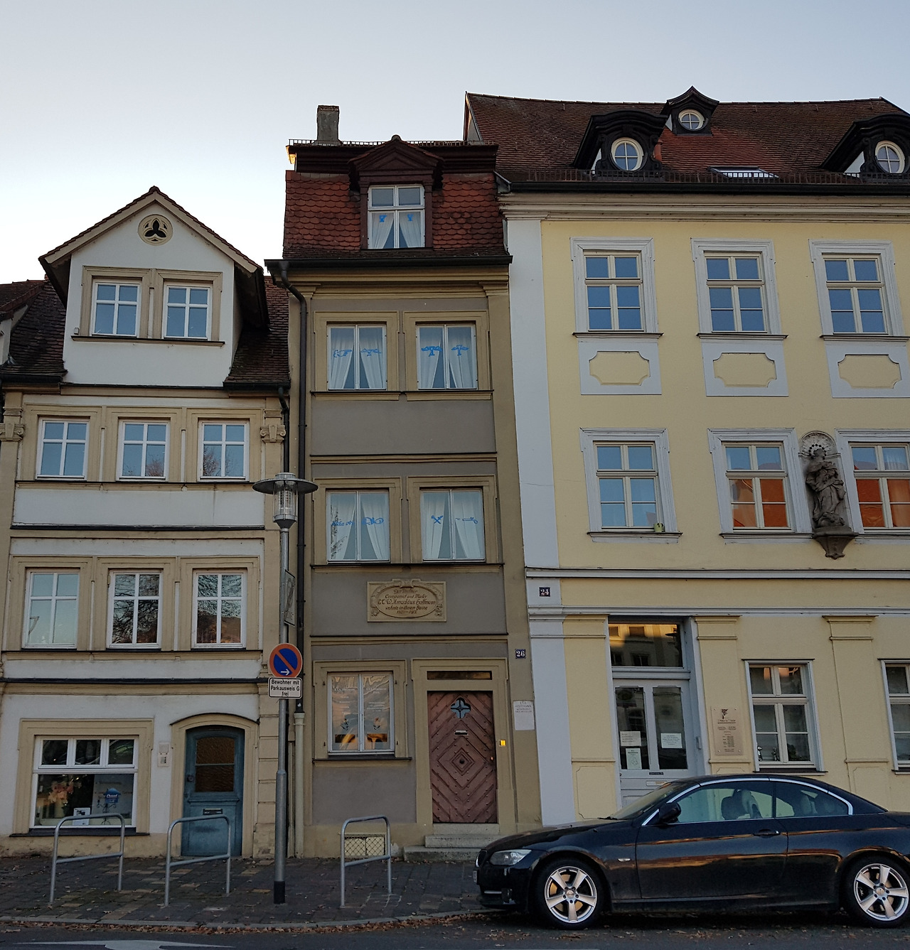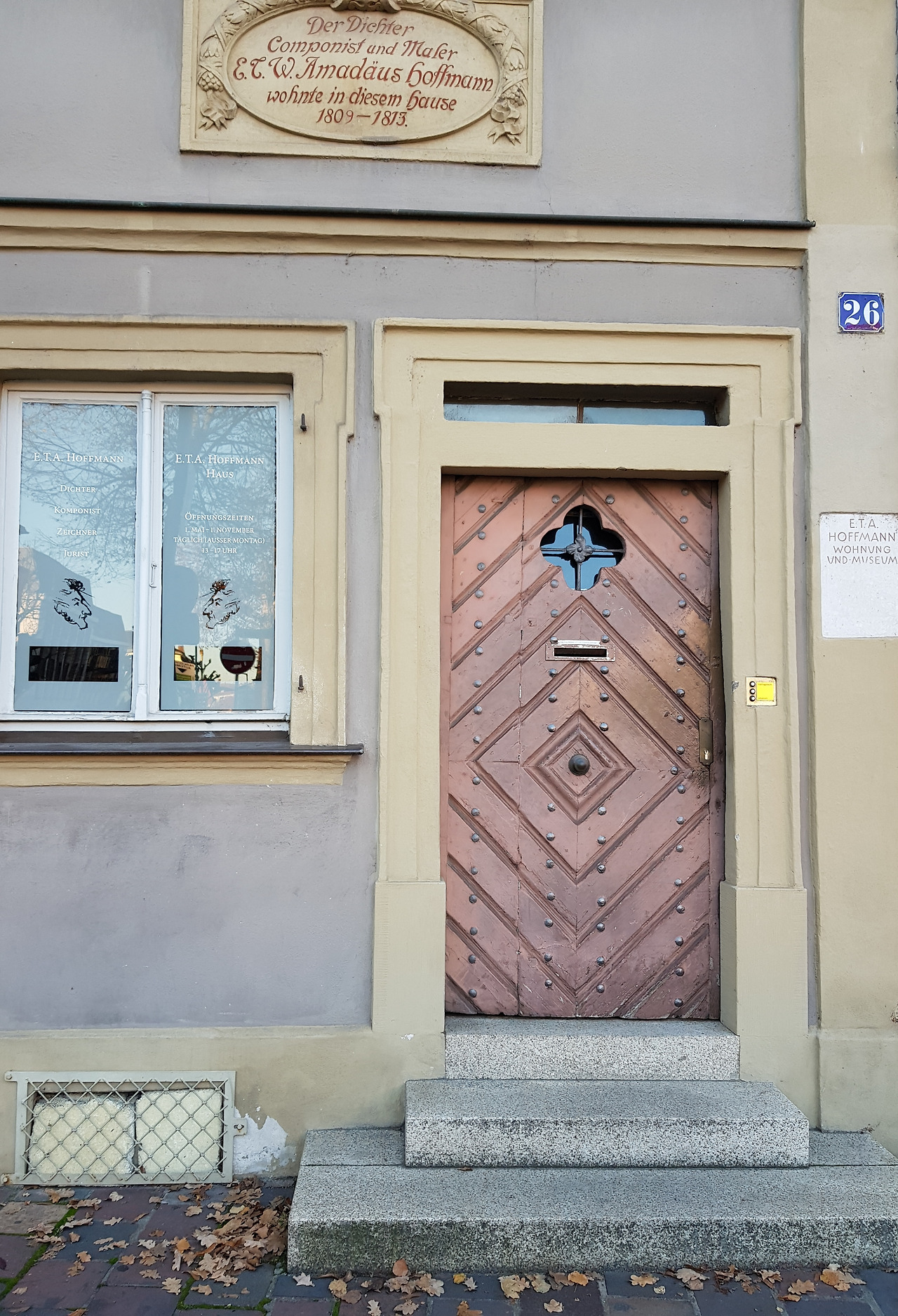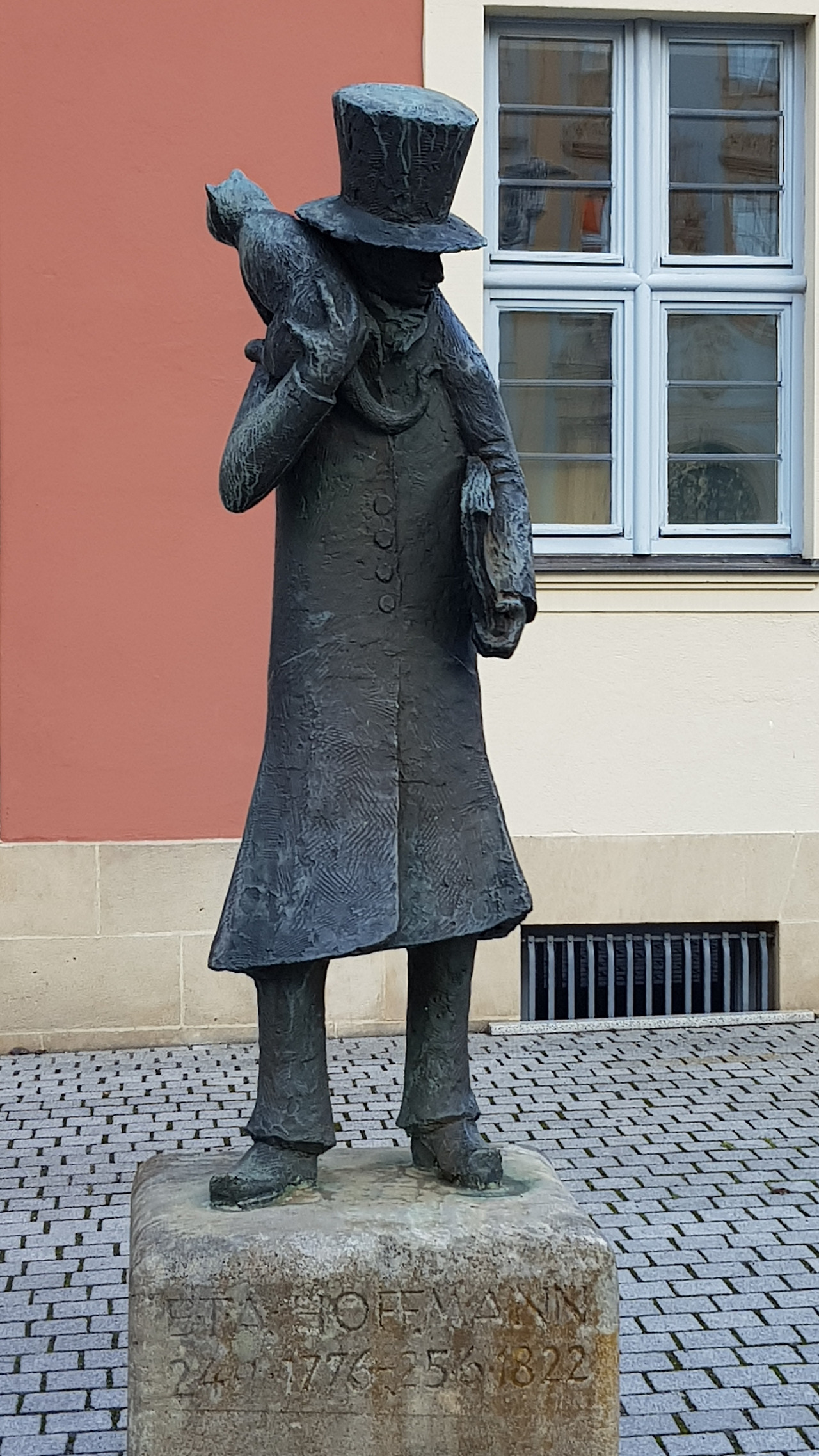 호프만은 밤베르크에서 5년 가까이 살았다. 좁고 높은 그의 집은 현재 호프만 하우스* 가 되었다. 실러 광장 26번지 Schillerplatz. 그는 이 집의 3층과 꼭대기 옥탑방을 사용했다. 이 집에 살며 대체로 만족한 편이었다. 맞은편 호프만 광장에는 호프만 극장과 <수고양이 무어의 인생관>의 주인공 고양이 무어 Murr를 어깨에 올린 호프만 동상과 만날 수 있다. 호프만 하우스는 록다운 직전에 문을 닫았다. 연중 개관일이 끝났기 때문이다. 밤베르크에 <호프만의 길>도 있다는 건 나중에 알았다. 내년에 다시 와서 걸어보고 싶은 길. 밤베르크에 있는 7개의 언덕과 그 언덕 위의 성당들도. 호프만은 1808년 구월에 와서, 1813년 사월에 밤베르크를 떠났다.