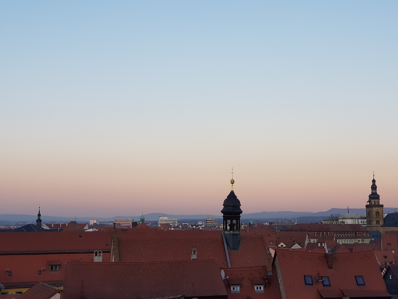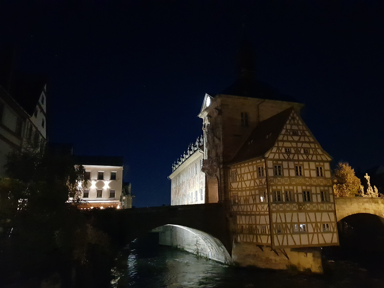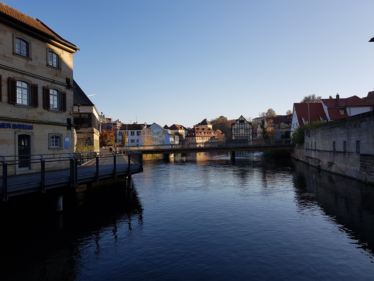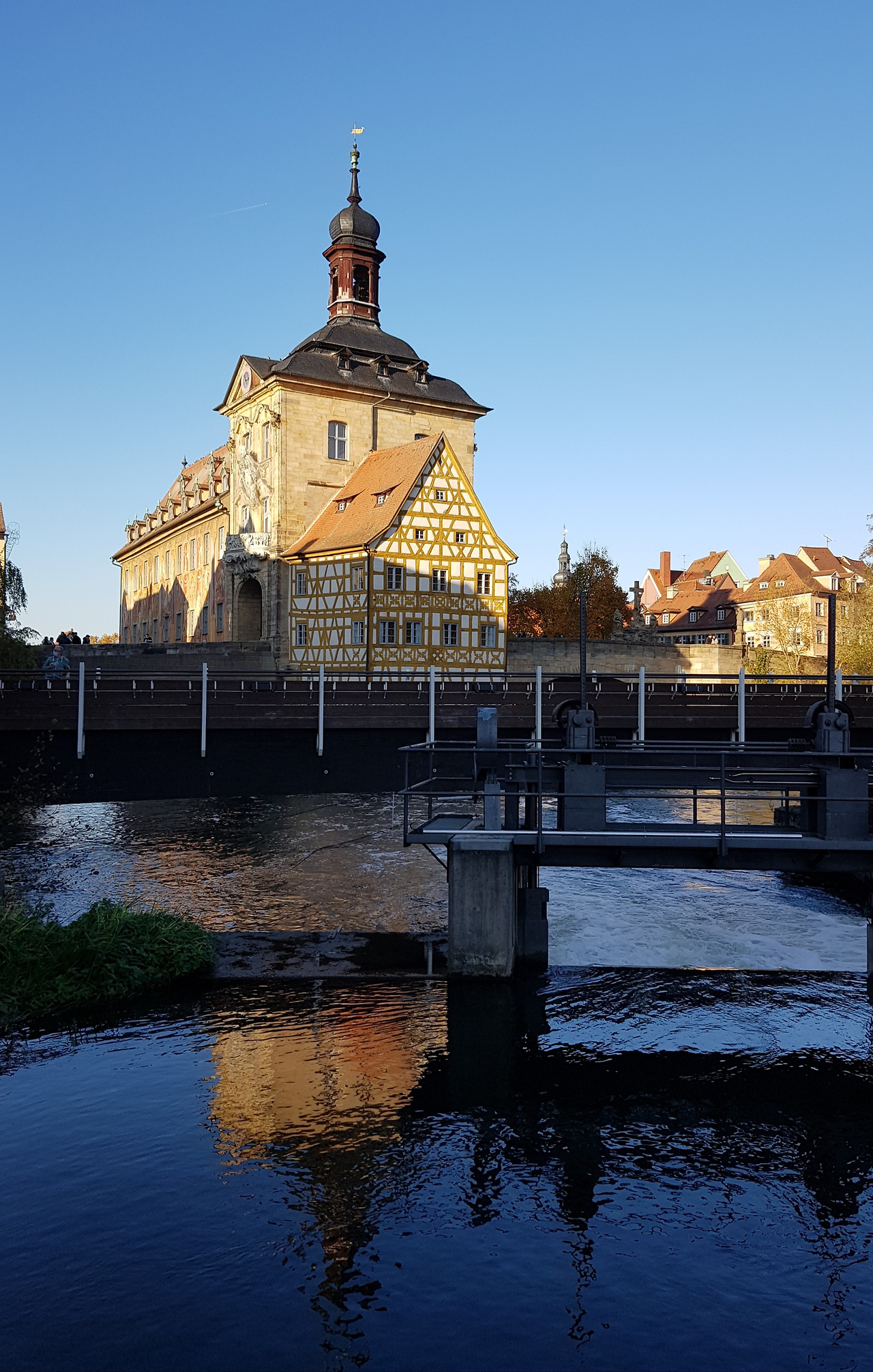 밤베르크는 독일 남부 바이에른의 작은 도시다. 인구는 7만. 2차 세계대전 때 드물게 파괴되지 않아서 특히 아름답다. 도시 전체가 중세의 모습을 간직하고 있기에 1993년 유네스코 세계문화유산으로도 등재되었다. 시청 위치도 특이하다. 도시를 가로지르는 레그니츠 강 가운데에 있다. 대성당과 가톨릭 주교가 살던 궁전쪽과 일반 시민들이 살던 반대쪽이 서로 시청을 짓겠다고 나서자 어쩔 수 없이 강 한가운데에 짓게 되었다. 강과 운하를 따라 아름다운 풍경을 볼 수 있어 '독일의 베니스' 혹은 '작은 베니스'라고도 불린다. (놀란 건 우리 말고도 독일 관광객들이 제법 있더라는 것. 밤베르크는 가게 안이든 밖이든 모든 곳에서 마스크 필수.도시락 지참. 다른 사람들과 거리두기 노력함.)
