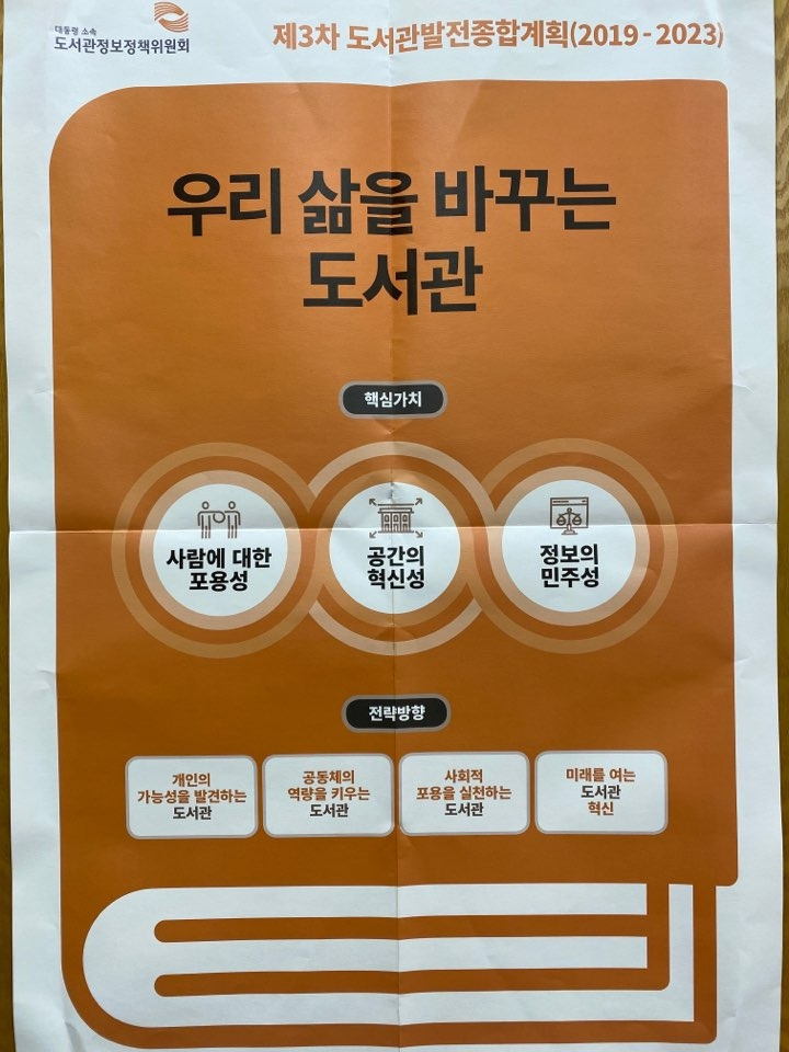 때마침 나는 '지식문화도시, 서울을 위한 도서관발전종합계획'의 과제 이행 상황을 살펴보고 있었다. 서울시 도서관발전종합계획은 2018년도에 수립하여 실행하고 있으며, 국가 도서관발전종합계획은 2019년에 수립하고 현재 3년 차에 접어들었다. 서울시가 1년 먼저 계획을 수립하고 발표하였으나, 국가 계획과 비전이나 과제가 크게 어긋나지 않은 것은 다행스럽다. 서울시의 경우 '내 삶을 바꾸는 지식문화도시, 서울'이라는 비전을 세웠는데, 국가 계획의 비전은 '우리 삶을 바꾸는 도서관'이다. 국가나 서울시나 도서관의 역할이 국민(시민)의 삶의 변화를 꾀하는 것이라는데 이견이 없다는 것이다. 그러나 국가, 광역과 기초 지방자치단체의 종합발전계획이 얼마나 정책의 지향점과 과제의 통합성이 있는지는 잘 모르겠다. 지방자치단체마다 수립시기가 제각각이고, 외부에 연구용역을 통해 수립하고 있는데 이렇게 제각각인 종합발전계획이 얼마나 국민의 삶의 변화를 견인할 수 있는 구체적인 고민이 깃들어 있는지 궁금하다. 매년 국가 도서관발전종합계획의 시행계획 요청에 따라 광역 대표도서관은 해당 시.도의 실행계획을 제출해야 한다. 올해도 서울시나 자치구는 자신들의 계획을 국가의 시행계획에 맞도록 재편성하여 제출할 것이다.