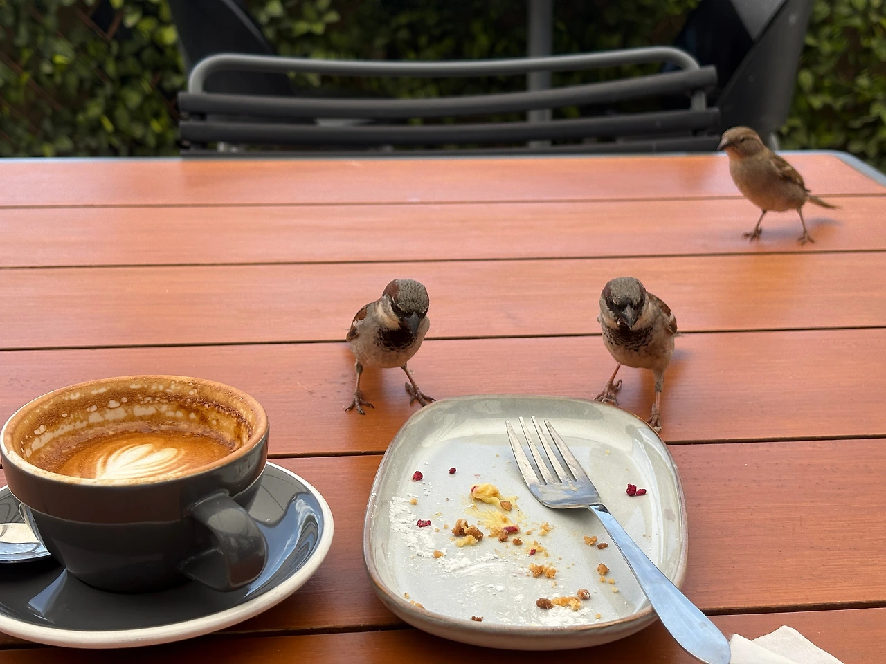 그런데 호시탐탐 내 케이크를 노리는 작은 도적이 있으니, 그 이름은 참새.