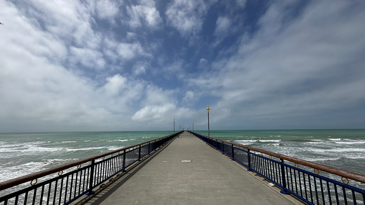 2층 문을 열고 나오면 바로 뉴브라이튼 피어와 연결된다. 다리는 총 30미터이고, 맨 끝에서는 낚시하는 사람이 몇 명 있었다. 어떤 어종을 잡으면 좋은지 안내판까지 있는 걸로 봐서는 낚시 명당인 모양이다. 바람이 어마어마하게 불어서 낚시가 될까 궁금하긴 했다.