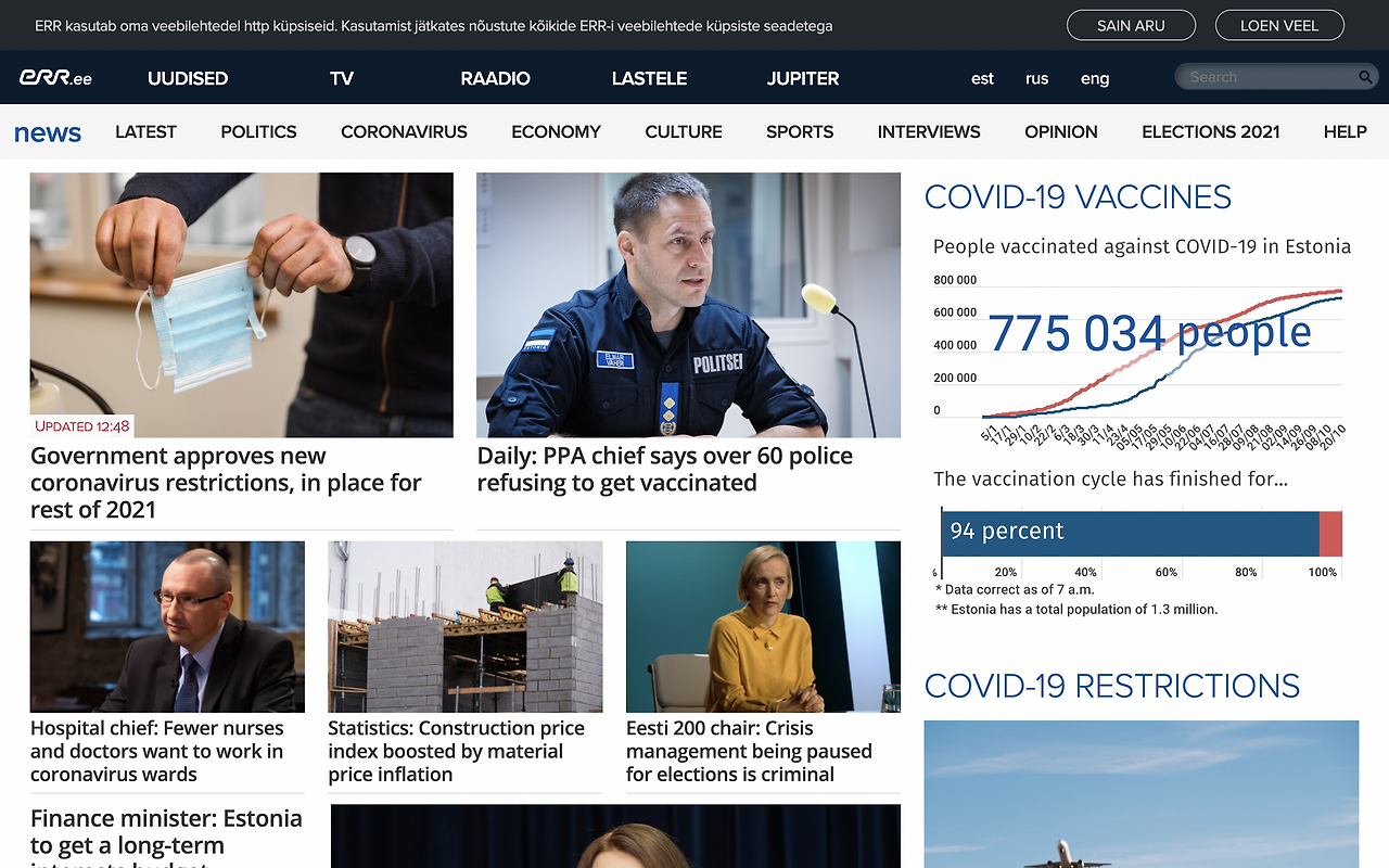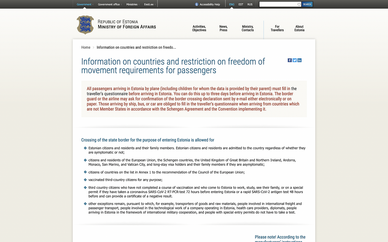 그리고 대부분의 정보가 영어로도 공유된다. 이것은 내가 에스토니아를 행선지로 정한 이유 중 하나이기도 한데, 모든 정부, 미디어 그리고 주요 시설의 홈페이지에 정보가 영어로도 원활하게 제공된다는 점이다. 코로나 판데믹으로 인해 늘 상황이 급변하는 시기에 물론 에스토니아어를 할 수 있다면 베스트이겠지만, 그렇지 못하기에 빠르고 정확한 정보의 취득은 중요해진다.