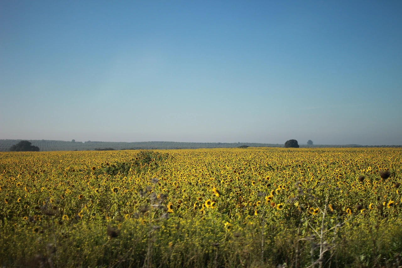 올리브 농장 사잇길을 지나는 동안 어느 새 안개는 거짓말처럼 사라지고 해바라기 밭이 펼쳐진다. 저 멀리 지평선까지 가득 메운 해바라기는 한 겨울 스페인의 햇살을 받으며 노랗게 들판을 물들인다.