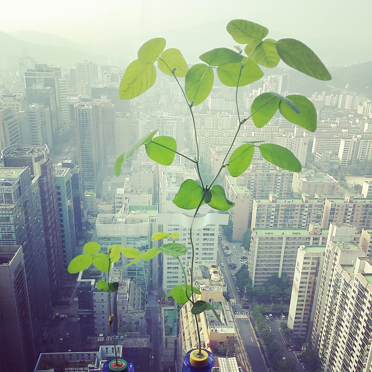 마구마구 자라는 콩나무가 너무 신기해서 창가로 자리를 옮겨주었다. 자리를 옮기는 데는 '저러다 천장까지 자라는 건 아닐까' 걱정하는 동료들의 관심도 컸다.