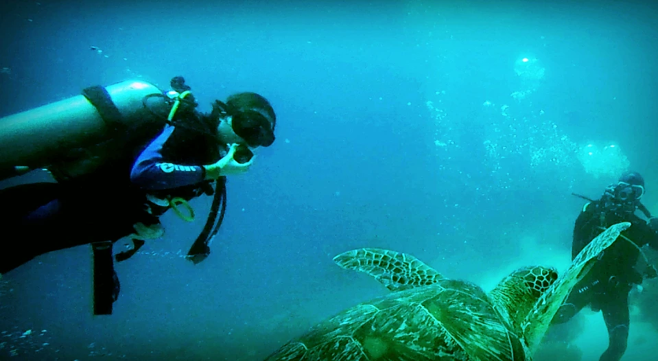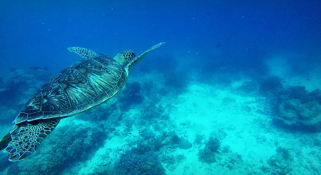 바닷속을 유유히 헤엄치는 거북이는 마치 하늘을 나는 것처럼 보이기도 하고, 우주를 헤엄치는 것처럼 보이기도 하고, 그 모습이 너무나 신비롭다. 특히 옆에서 눈을 마주치며 함께 헤엄칠 때의 기분이란 이루 말로 표현할 수가 없다.