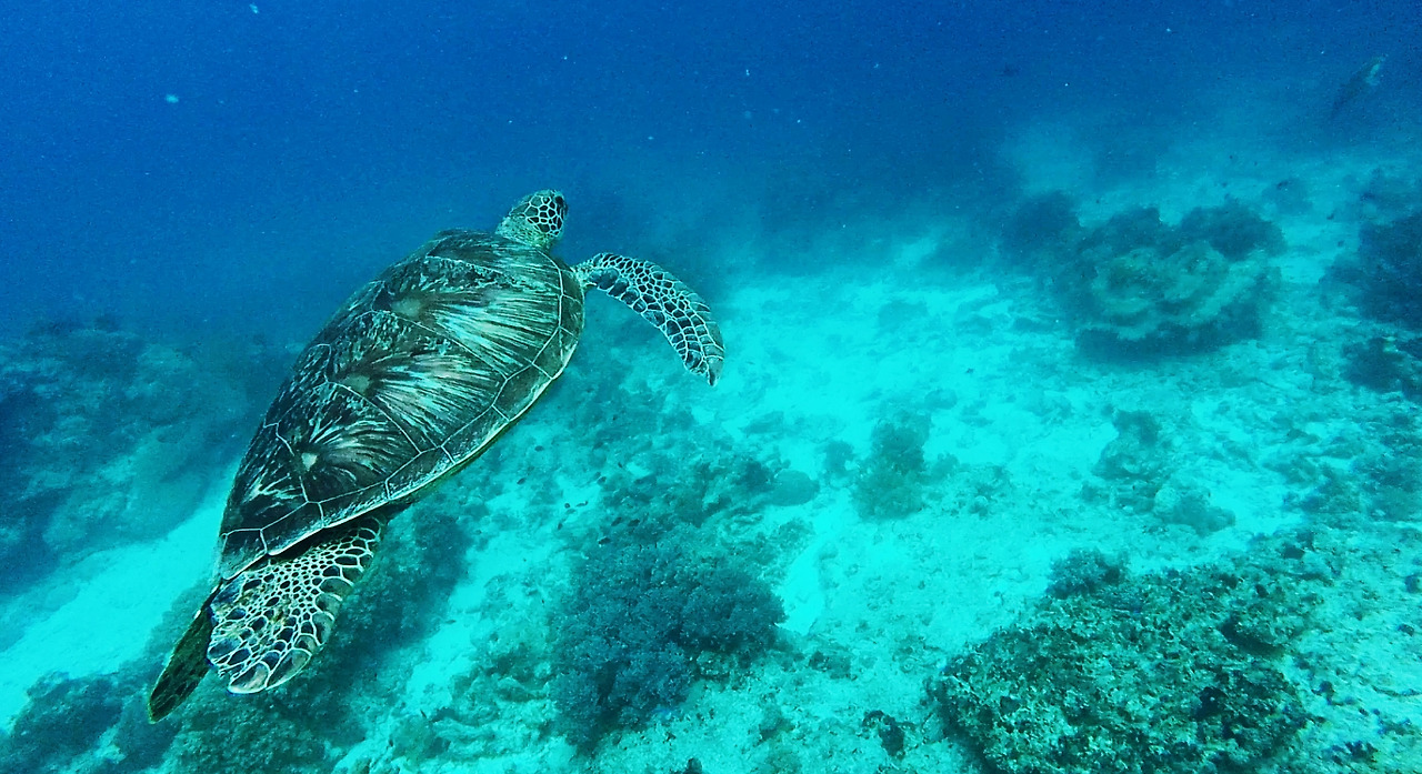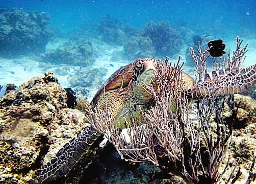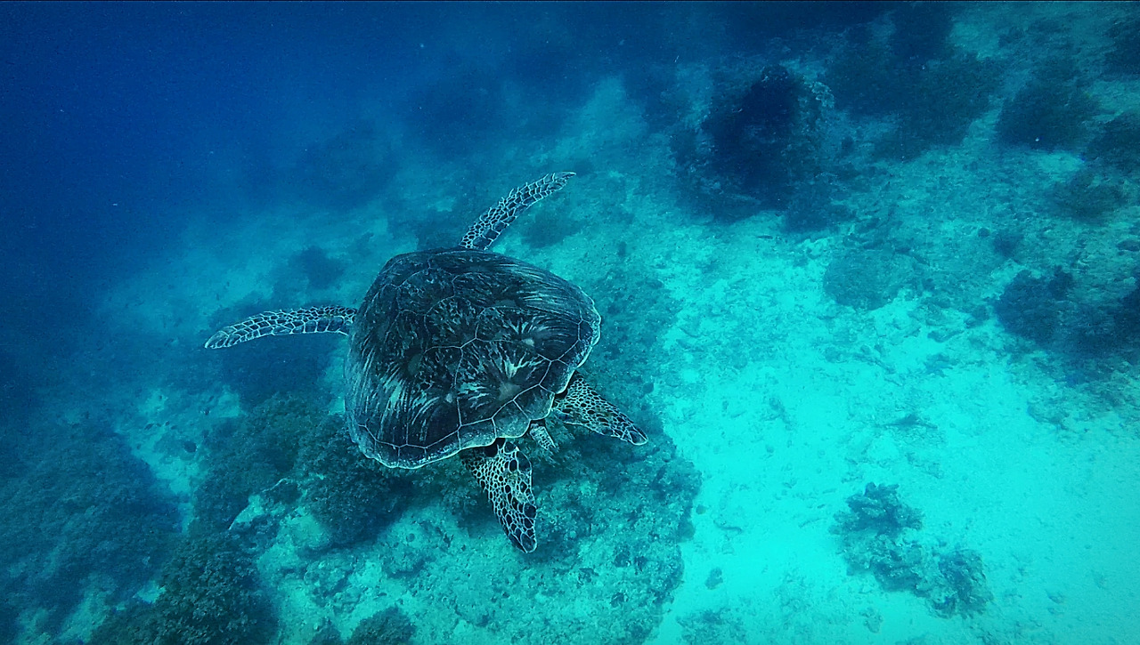 몸을 담그고 헤엄을 치다 보면 하나 둘 신기한 바닷속 동물들이 나타나는데 그중에서도 가장 반가운 건 거북이다.