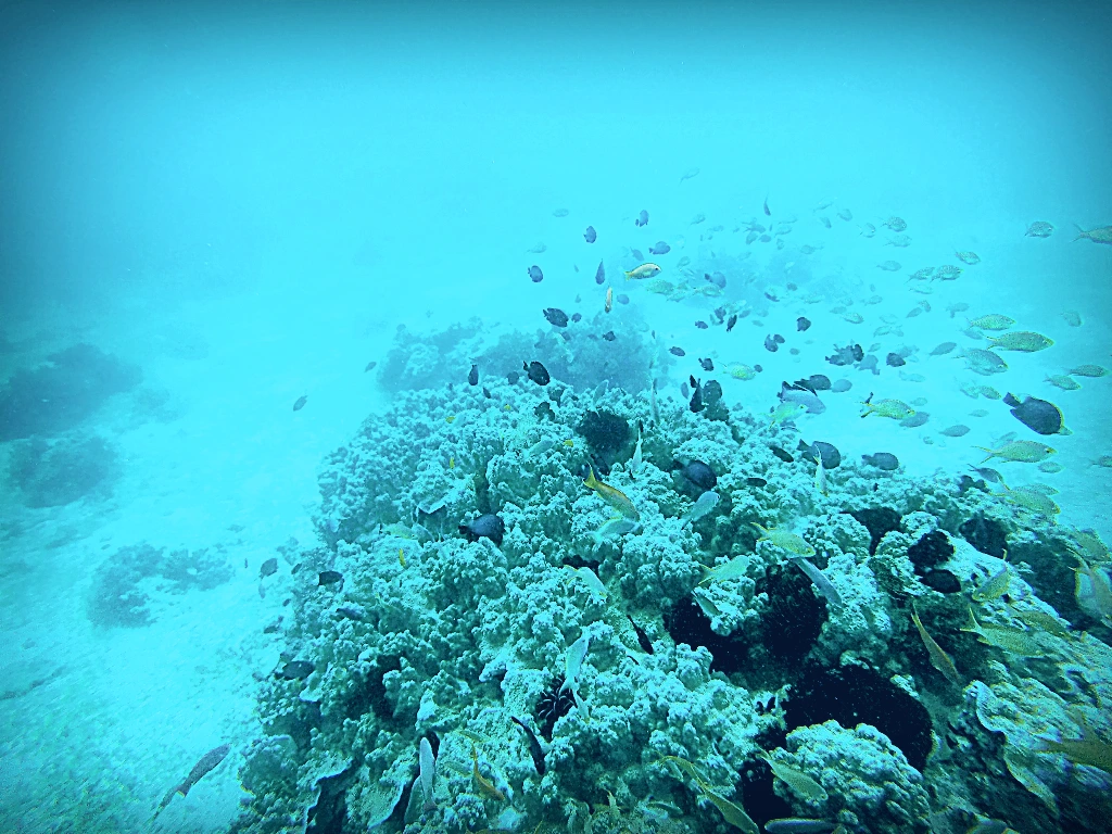 바다로 깊은 곳으로 나갈수록 점점 바다 색이 짙어진다. 배를 타고 달려 나가는 내내 드디어 바닷속 세상을 만날 생각에 파도 하나 없는 바다 위에서도 마음이 두근두근 설렌다. 물이 너무너무 맑고 깨끗해서 물 위에서도 바닷속이 훤히 들여다 보이지만 바닷속에서 보는 아름다움과 신비로움에 비할바가 안된다.