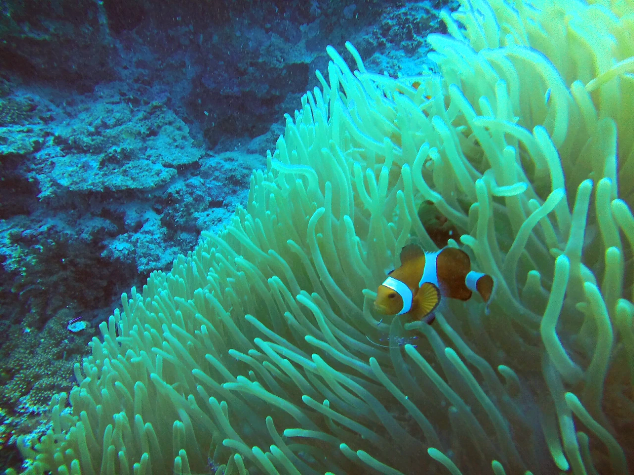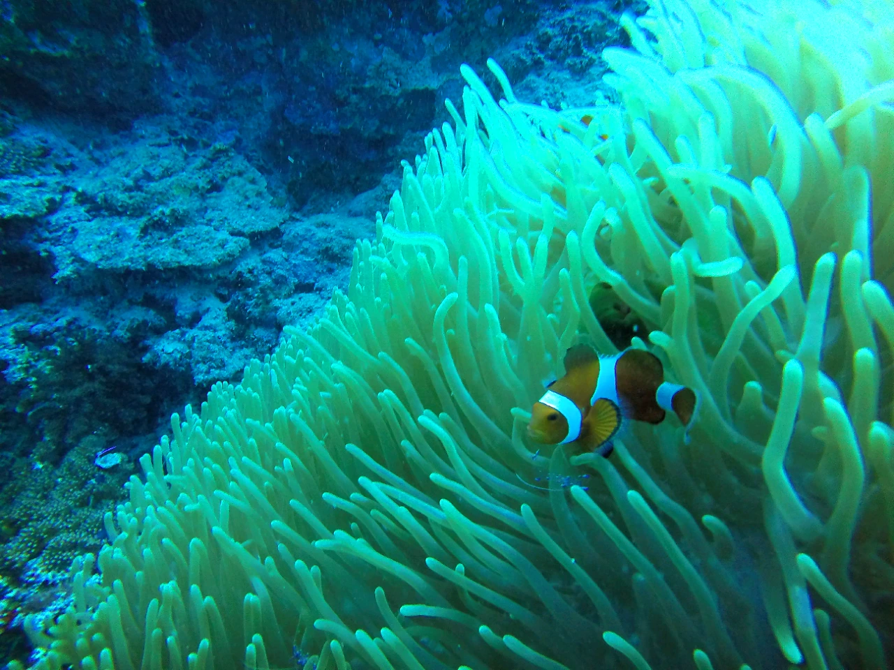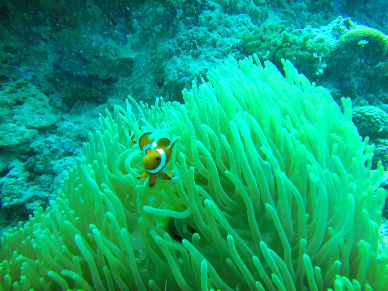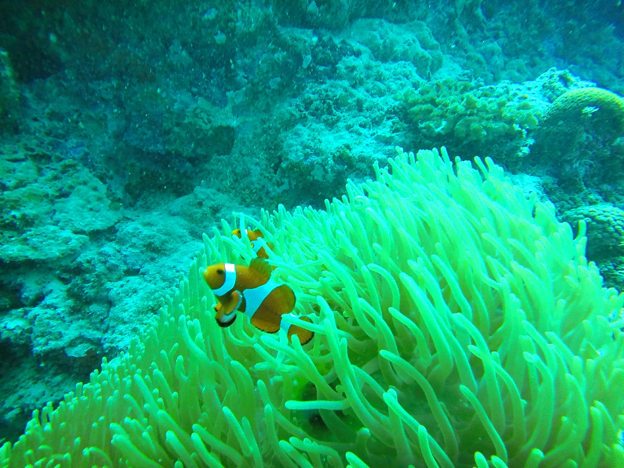 가까이서 보니 멀리 서는 잘 보이지 않았던 니모 두세 마리가 말미잘 사이를 이리저리 왔다 갔다 하며 노니는 모습이 보였다.