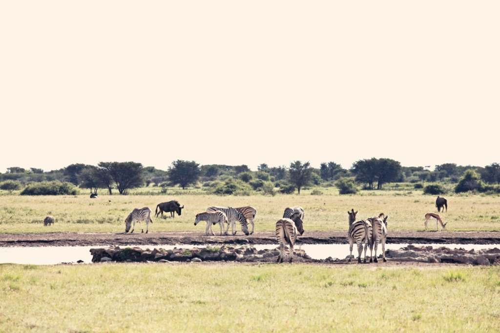 아프리카의 넓은 들판 한가운데 있는 웅덩이 주변에는 코뿔소뿐만 아니라 얼룩말, 자이언트 비스트, 임팔라와 같은 여러 동물들이 모여있었다. 서로 무리를 지어 사이좋게 물을 먹는 모습이 라이온 킹의 한 장면 같기도 하다.