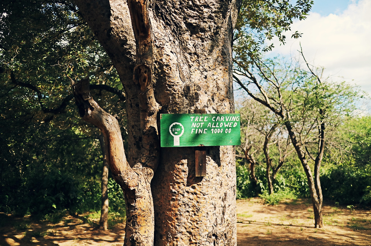 캠프 사이트에 있는 나무에 걸린 푯말을 보고 '왜 이런 게 붙어있지?'라고 생각했는데 이후에 계속 아프리카를 여행하다 보니 웬만큼 크고 멋진 나무에는 사람들이 새겨놓은 알 수 없는 문자들이 너무나 많아 기괴해 보일 정도였다. 오죽하면 경고문까지 만들었을까.