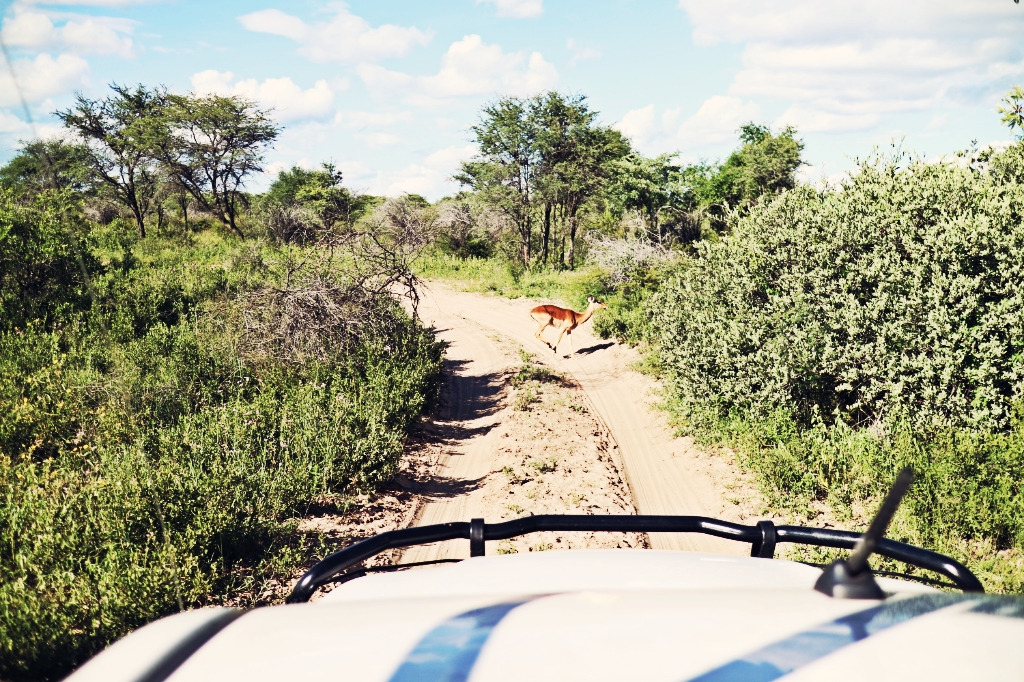 덜컹덜컹 오프로드를 달린 지 3분 정도 되었을까? 임팔라 한 마리가 길 위를 가로질러가고 있어 차를 세웠다.