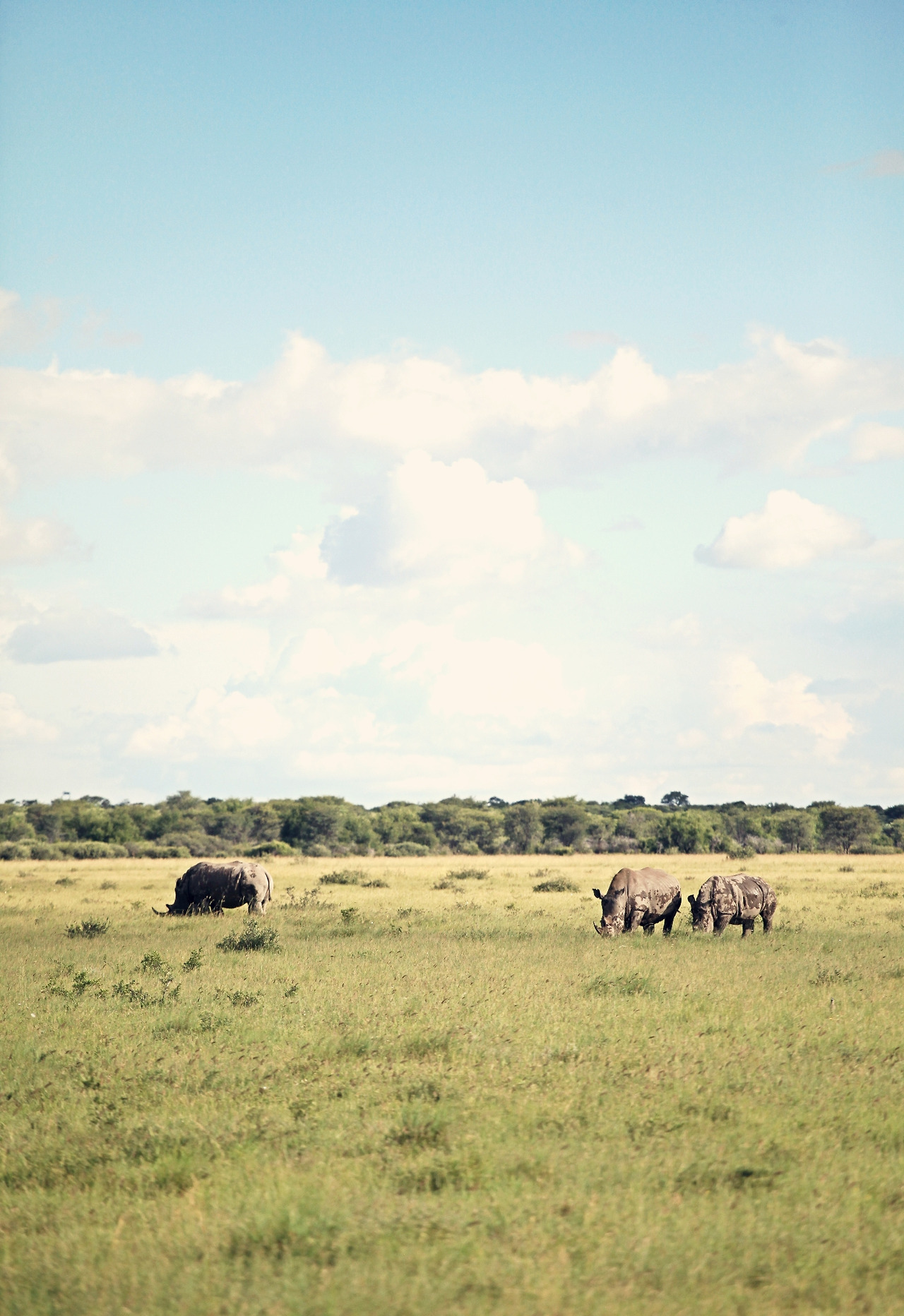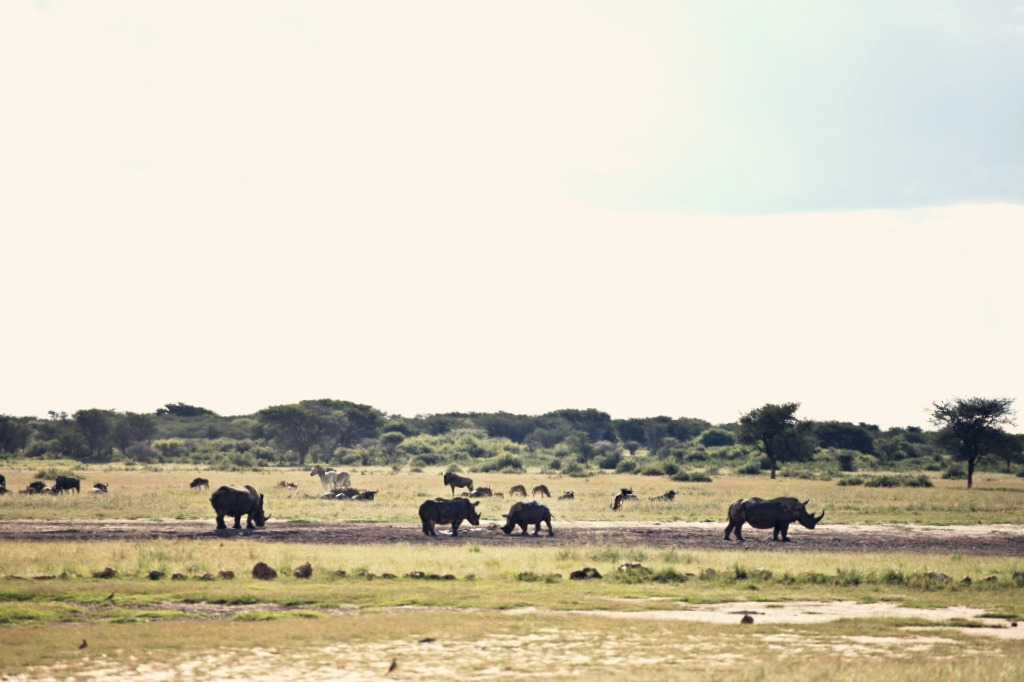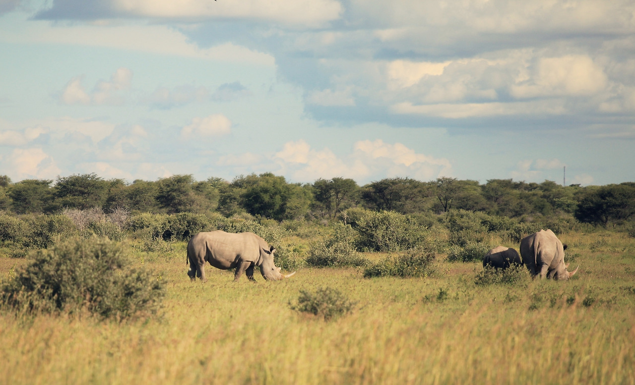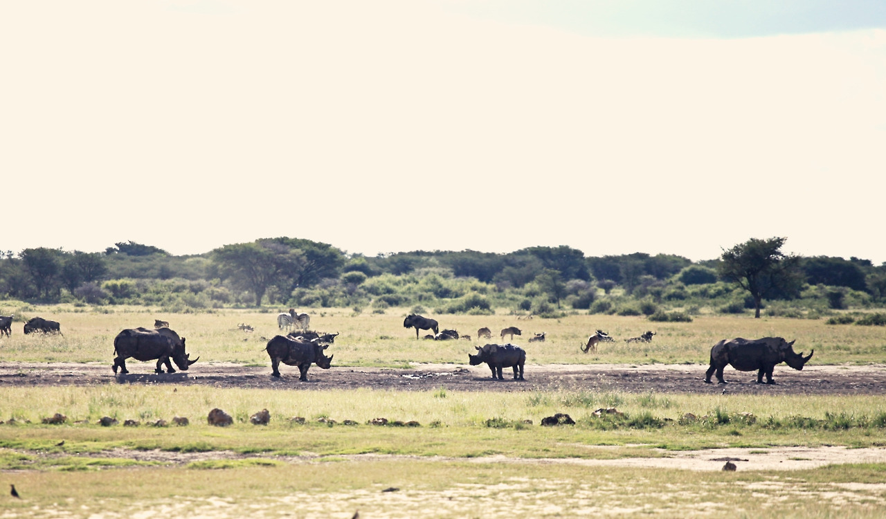 카마 코뿔소 보호구역의 주인공인 코뿔소들이 눈앞에 나타났다. 이곳에는 보츠와나에 남아있는 16종의 코뿔 소중에 7종이 서식하고 있다. 모두 다 같은 코뿔소라고 생각하기 쉽지만 종마다 피부색과 외형이 조금씩 다르다.