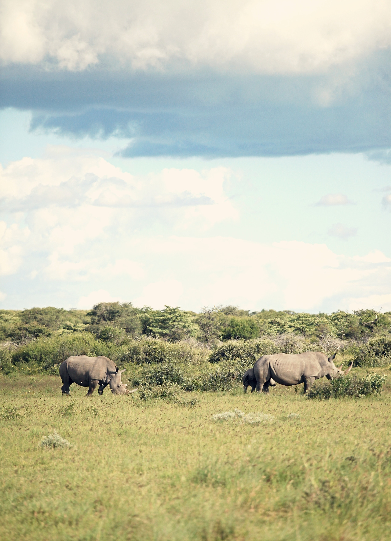 한눈에 웅장함과 묵직함이 느껴지는 동시에 마치 누군가 들판 위에 코뿔소 피규어를 총총 올려 둔 것 같다는 비현실 감도 느껴진다. 너무나 멋진 광경에 두 눈을 비비며 이 장면이 내 눈앞에 펼쳐진 이 순간이 현실인지 거듭 질문을 던져본다.