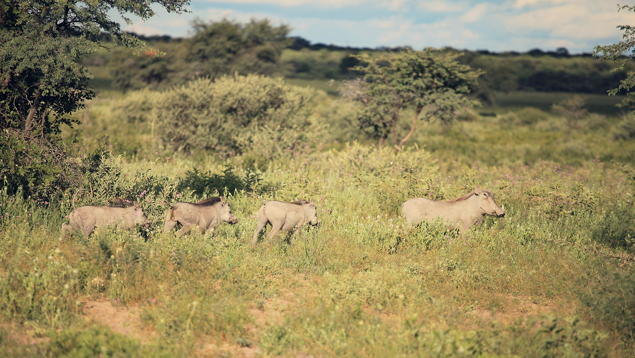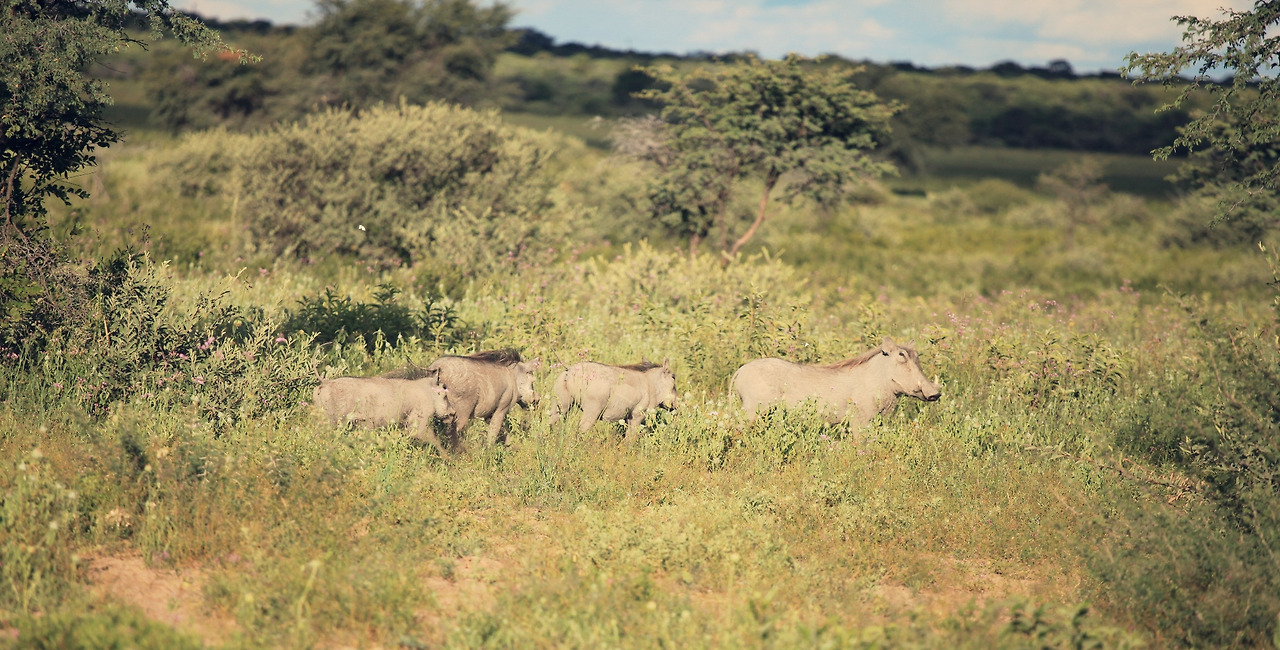 다시 캠프 사이트로 돌아가는 길에 품바 가족들을 만났다. 실컷 놀다 이제 집으로 돌아가는 길인지 엄마 뒤를 졸졸졸 따라가고 있다. 맨 앞에선 엄마 품바는 중간중간 뒤를 돌아보며 새끼들이 잘 따라오고 있는지를 챙긴다.