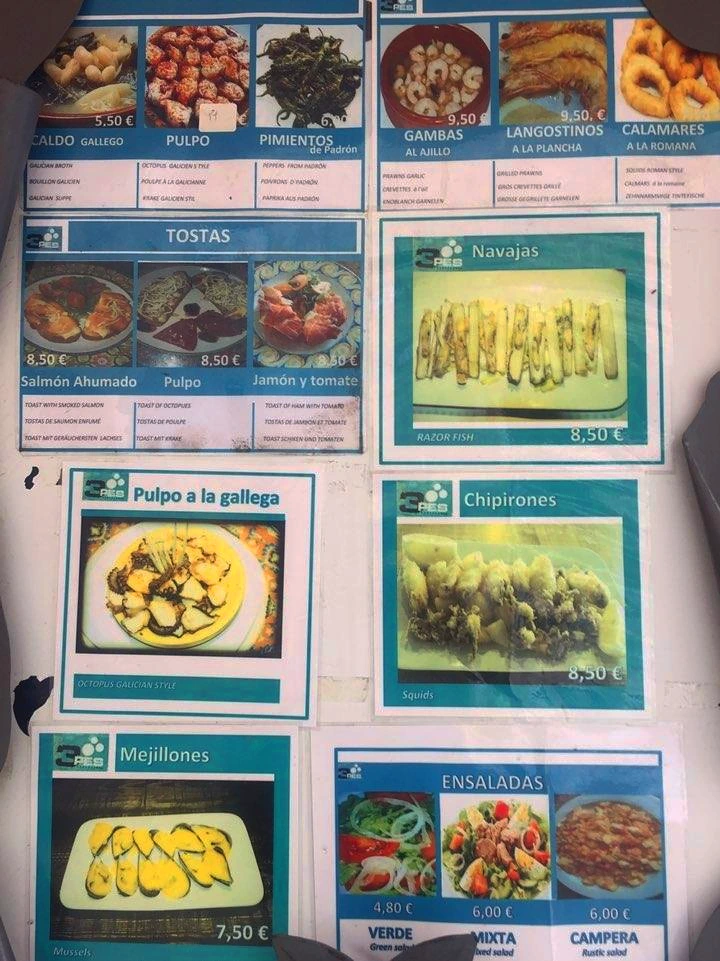 숙소에 짐을 놓고, 근처의 음식점으로 간다. 숙소를 잡고 처음 하는 일은 앱에서 음식점을 확인하는 일이다. 음식점들을 맵 위에 모두 표시해 놓고, 가까운 곳부터 리뷰를 확인해 보는 식으로 하는데, 별로 실패가 없었다. 사실 맛보다는 시간을 잘 맞춰야 한다. 스페인 음식점들은 오후에는 쉬고 늦게 다시 문을 연다. 우리처럼 아침에 활동하고 일찍 잠자리에 들어야 하는 ''(나이 많은) 걷는 사람들'에게는 8시 30분으로 저녁 시간을 맞추는 것이 너무나 어려운 일이었다. 그 시간이면 이미 내가 지도를 펴 놓고 앉아 졸고 있을 시간 이기 때문이다.
