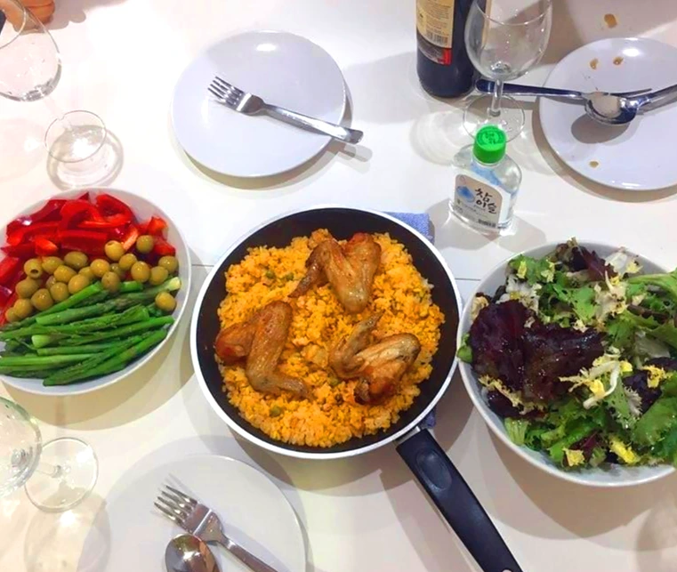 우리는 대부분의 저녁식사를 간단하게 만들어 먹었다. 알베르게가 아닌 아파트나 펜션을 이용하기로 하면서 이외의 비용은 줄여보려고 했던 이유이기도 하고, 번잡스러움을 피하기 위함 이기도 했다. 10유로 정도면 그럴싸한 저녁이 탄생했다. 아버지는 이번 여행에서는 소주를 끊고 와인의 세계에 발을 들이겠다고 하셨다. 우리는 저녁 식사마다 와인을 곁들였는데, 1병에 2-3 유로의 테이블 와인이었다. 그러나 플라스틱병에 담긴 작은 소주병들은 여전히 아버지 가방 속이나 식탁 위에서 성스러운 한 자리를 차지하고 있었다.