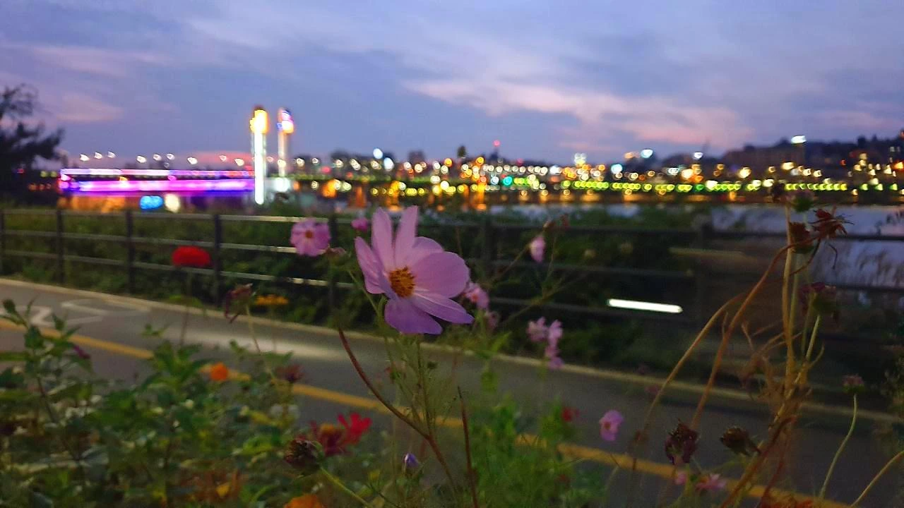 가볍게 한강 공원을 걷는 사이 해가지기 시작하며 하늘이 붉게 물들었고, 얼마 전에 친구와 함께 봤던 같은 풍경인데 오늘 더 예뻐 보였다.