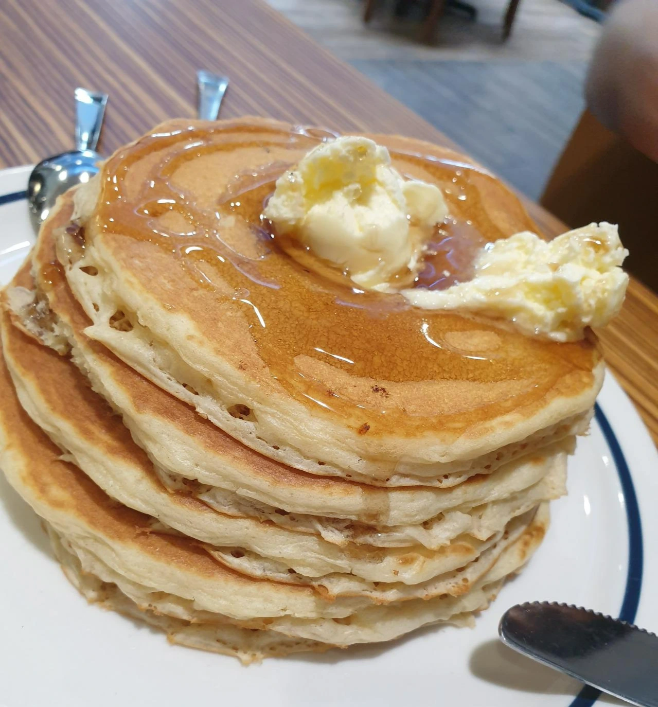일본인 동료가 팬케이크를 받자마자 깜짝 놀라 했다. 5단짜리 팬케이크는 나도 처음 보는 거였다.