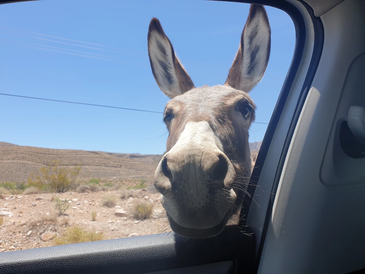 당나귀가 우리 차 쪽으로 오더니 갑자기 창문에 얼굴을 불쑥 내밀었다. 당근이라도 있다면 주고 싶었는데 차 안에는 먹을게 하나도 없었다.