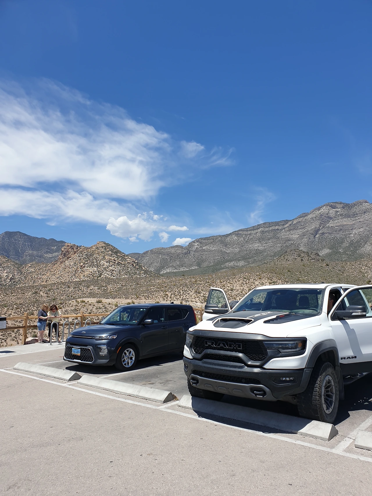 옆으로는 거대한 SUV 차량들이 주차되어 있었다.