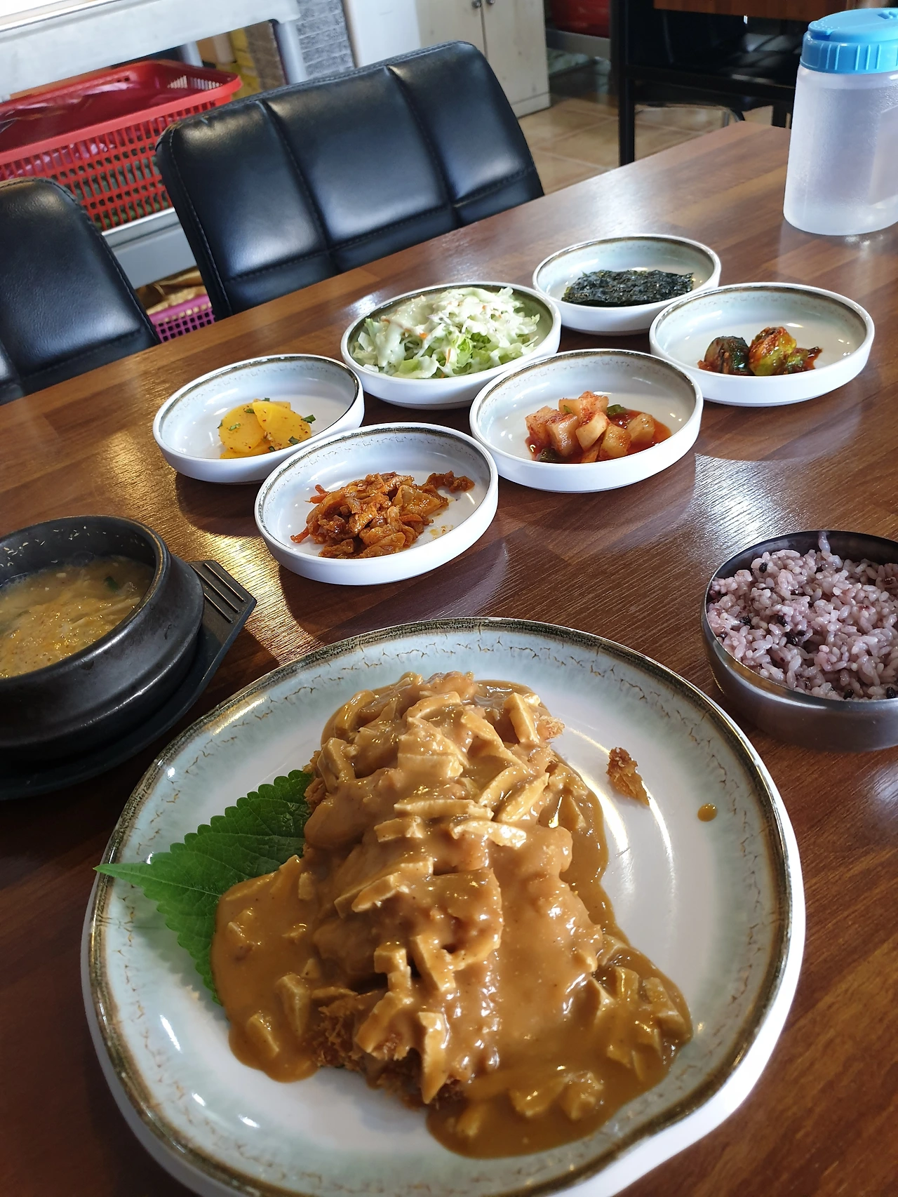 직원분께서 반찬을 테이블에 먼저 세팅해 주셨다. 배가 너무 고파서 반찬부터 먹었는데