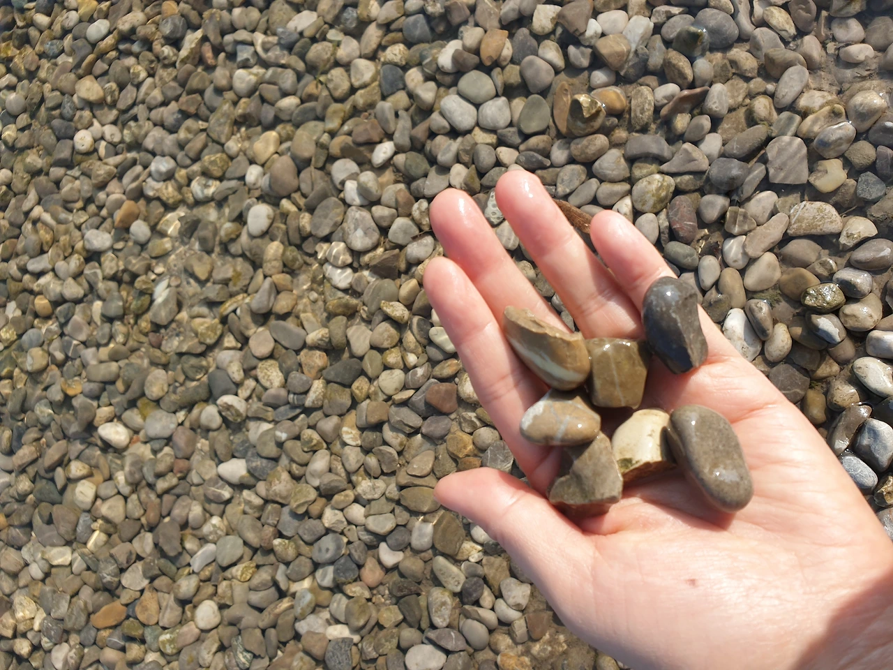 깨끗한 시냇물이 졸졸 흐르는 곳을 발견해서 조약돌을 손에 쥐어보기도 했다.