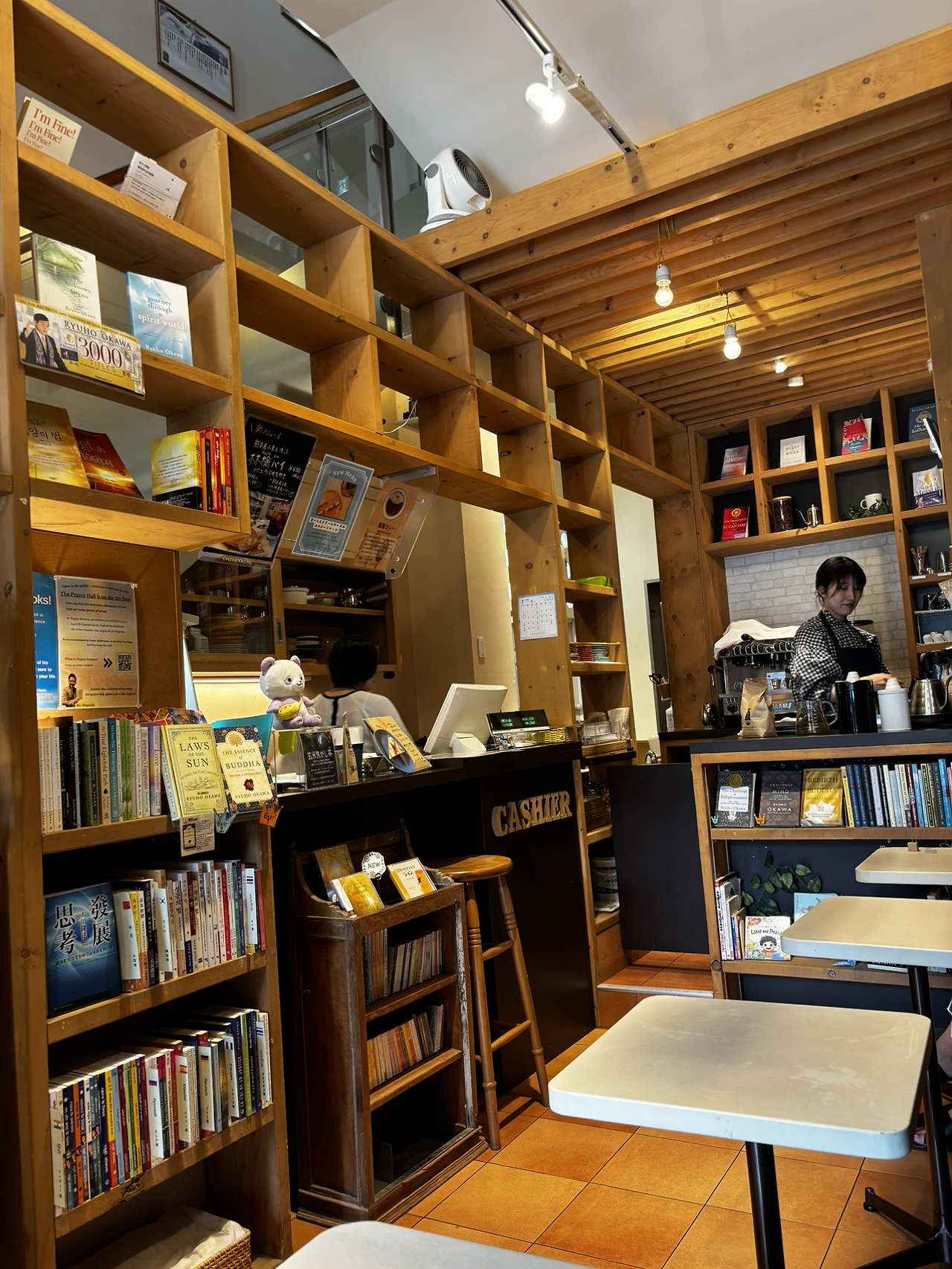 앉자마자 작은 책장에 일본어 책들이 여러 권 꽂혀있는 게 보였다. 알아볼 수 없는 글씨였지만 책들로 둘러싸여 있다는 그 자체만으로 어떤 안도감이 느껴졌다.