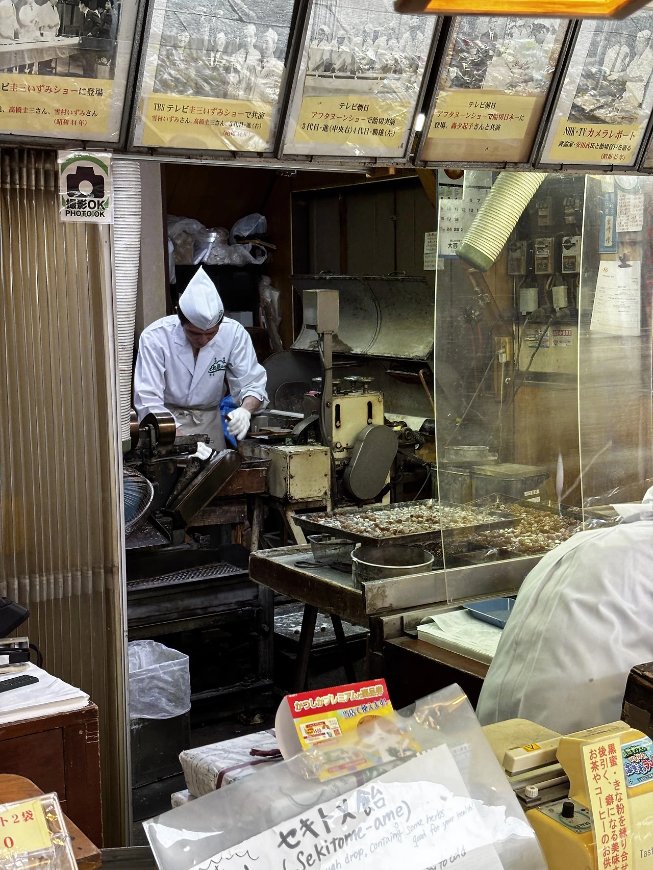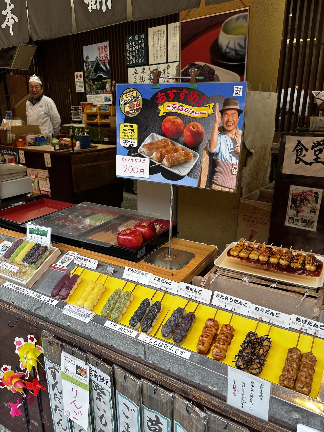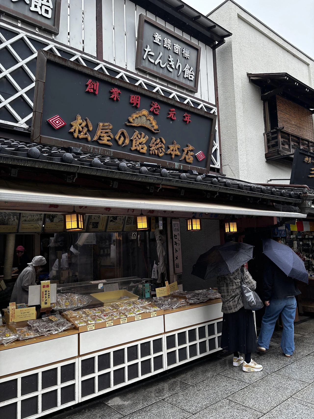 시바마타에 도착해서 제일 처음 찾은 곳은 길 양옆으로 일본식 옛 감성이 묻어나는 상점들이 길게 늘어선 곳이었다. 나무로 지어진 가게에서 일본과자, 떡 등을 수제로 만들어 팔고 있었다. 사람이 문 앞에 앉아 직접 반죽을 하고 모양을 내서 만드는 간식거리들이 왠지 정겨웠다.