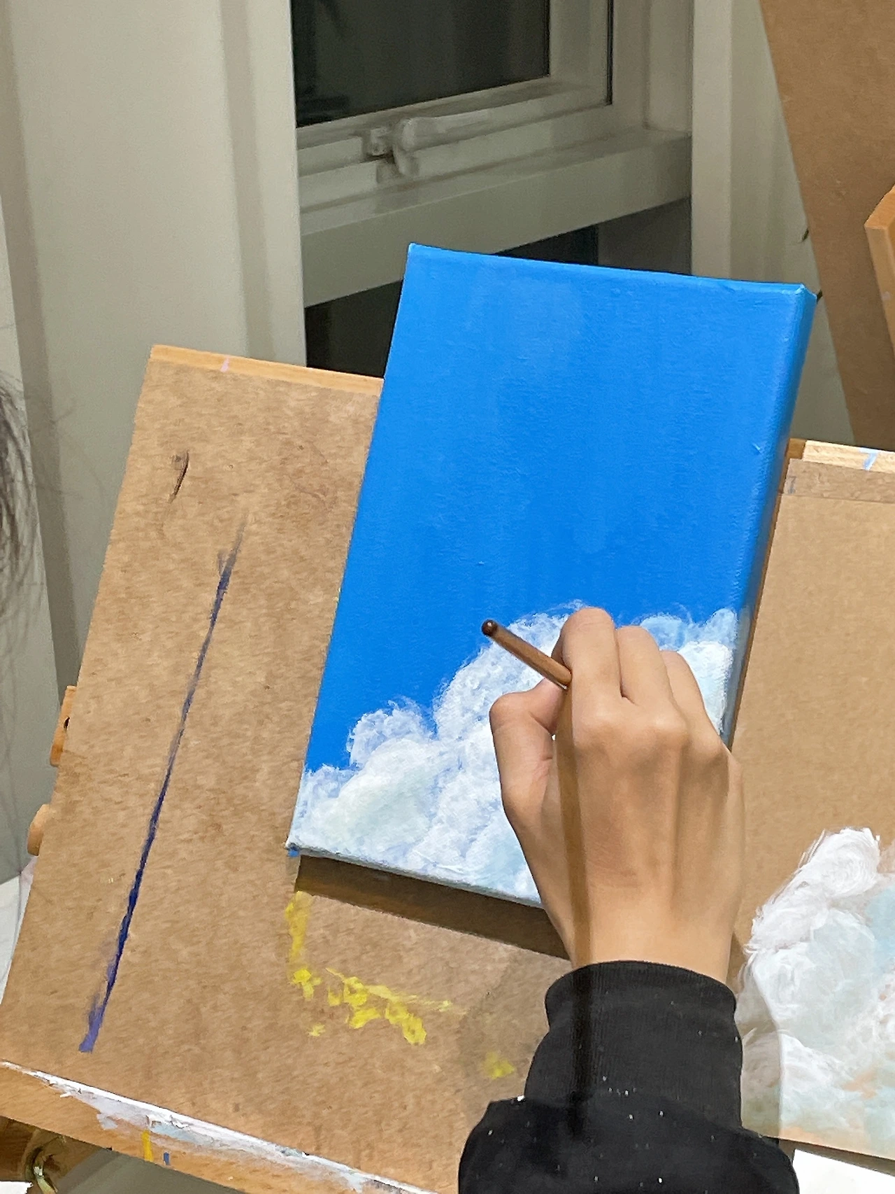 당신은 울타리 안의 사람들과 한없이 깊고 따뜻하고 포근한 사랑을 나눕니다. 가끔 당신이 주신 관심이 놀라울 정도로 섬세해서 소소한 감동에 젖기도 하지요. 당신이 사랑하는 사람들에게 쏟는 깊은 섬세함을 표현하기 위해 회색과 푸른색을 적절히 섞어 세세하고 꼼꼼히 명암을 주니 구름의 깊이감이 살아났어요.