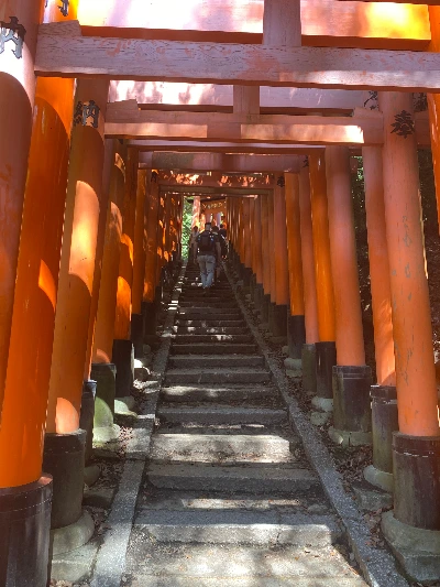 여우 신사를 산책하면 애니메이션에서 많이 보았던 광경을 실제로 볼 수 있다. 햇빛이 쨍쨍해 걷기 힘들 줄 알았는데 붉은 전통문인 도리이 덕분에 그늘이 만들어져 쾌적하게 걸을 수 있었다. 끝까지 올라갔다 오면 3시간쯤 걸린다고 적혀있는데 나는 몸이 허약해 왕복 1시간 정도로 산책했다.