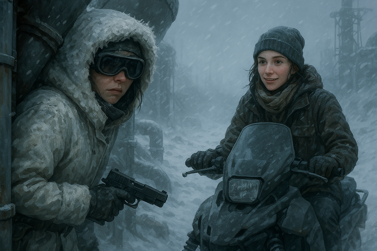 엔진음이 가까워지자, 눈보라를 가르며 한 인물이 모습을 드러냈다. 가죽 재킷에 모자를 깊이 눌러쓴 채 온몸이 추위에 떨려 보였지만, 자세히 보니 낯익은 얼굴이었다. 로사(Rosa)—유럽 연맹(European Federation)에서 온 외교·정보 수집 담당여성. 스물일곱쯤 되어 보이는 그녀는 빠른 숨을 내쉬며 스노모바일 시동을 끄고, 손을 흔들었다.