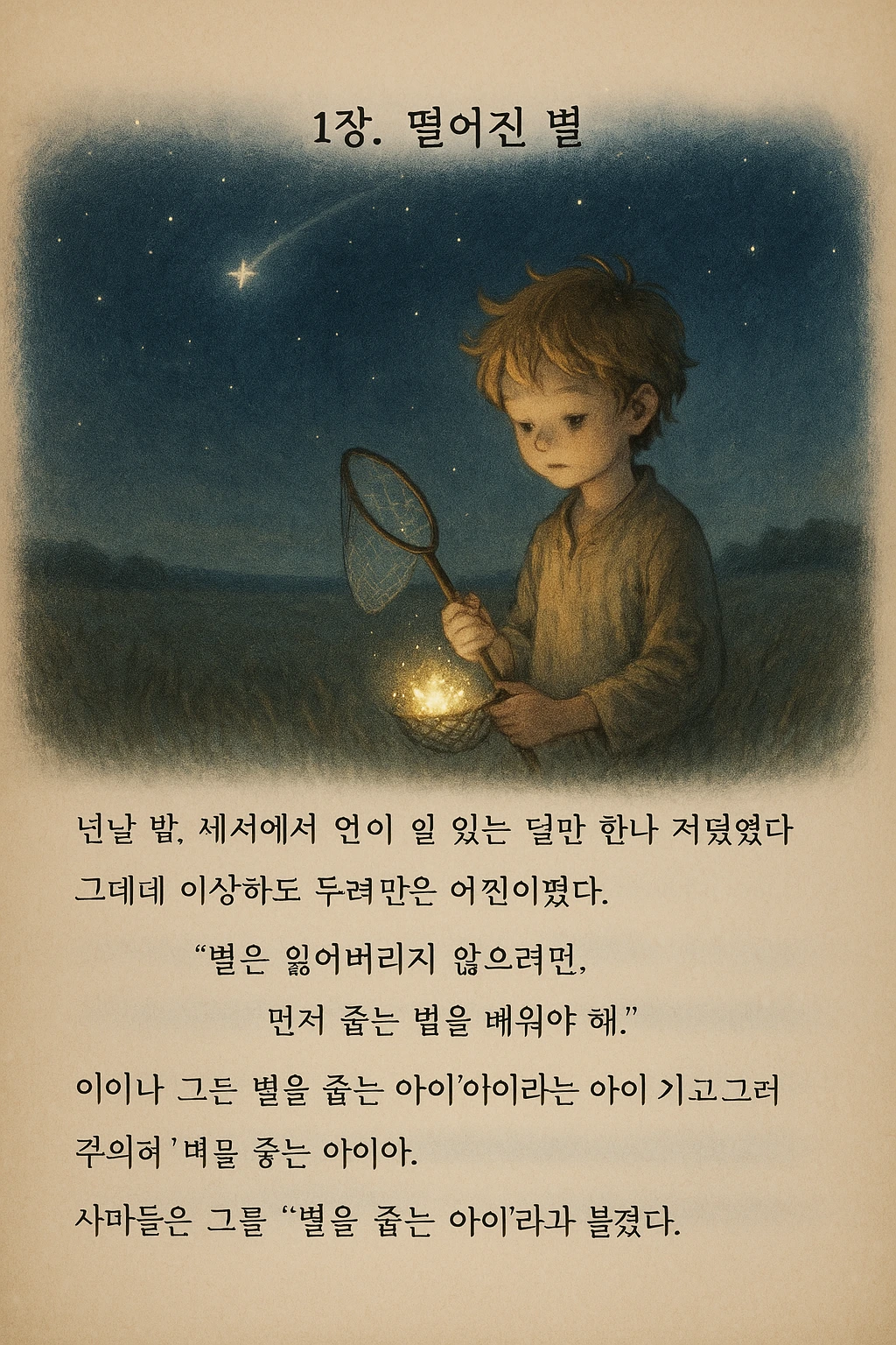 그날 밤, 세상의 누구도 알지 못하는 들판 한가운데, 별 하나가 조용히 떨어졌다.