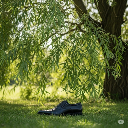 나무 그늘 아래의 구두 한 짝