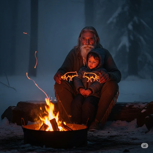 어느 겨울밤, 모닥불 옆에 앉은 할아버지는 손자를 무릎 위에 올려놓았습니다. 바싹 마른 장작이 타닥타닥 불꽃을 토해냈고, 바깥엔 눈보라가 소리 없이 숲길을 덮고 있었습니다.