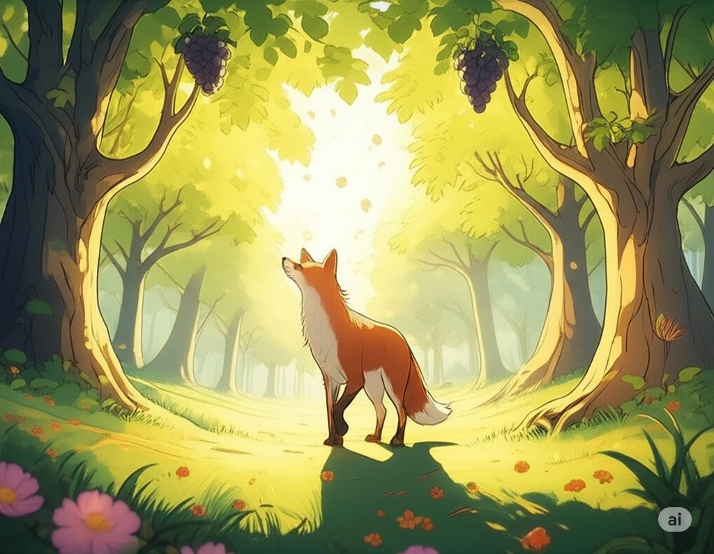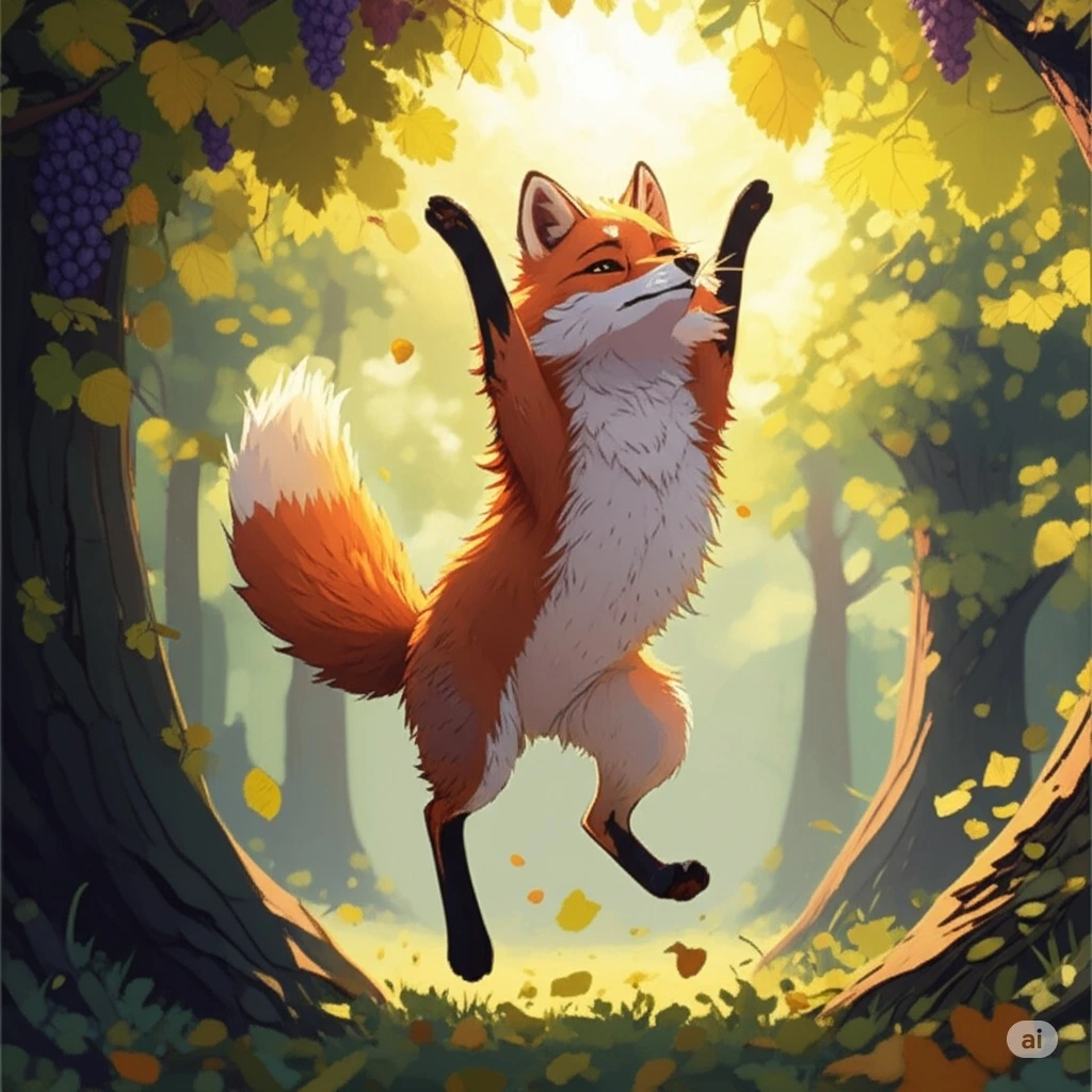 이튿날 아침, 팍스는 다시 포도원으로 향했습니다. 높이 달린 포도송이는 여전히 그가 닿을 수 없는 곳에 있었습니다. 하지만 이번에는 포도를 원망하지 않았습니다. 팍스는 오랫동안 포도송이를 올려다보며 마음속 깊은 곳의 질문과 마주했습니다.