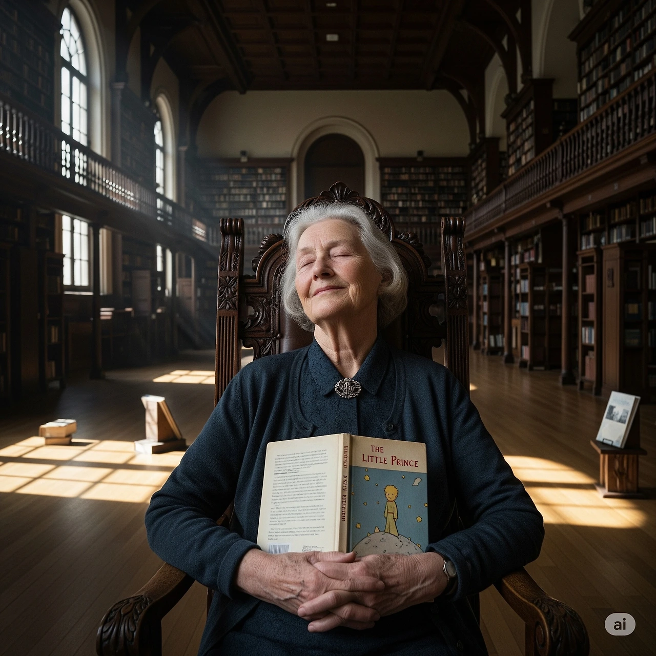 그녀는 평소처럼 청소를 마치고, 책장을 돌며 책 한 권을 꺼내더니, 그 자리에서 조용히 눈을 감았습니다.