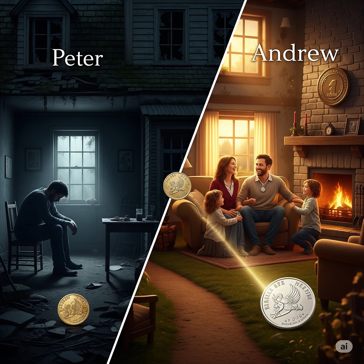 한편, 안드레아도 형에게서 받은 데나리온 한 닢과 예수님의 말씀을 가족에게 전했습니다.