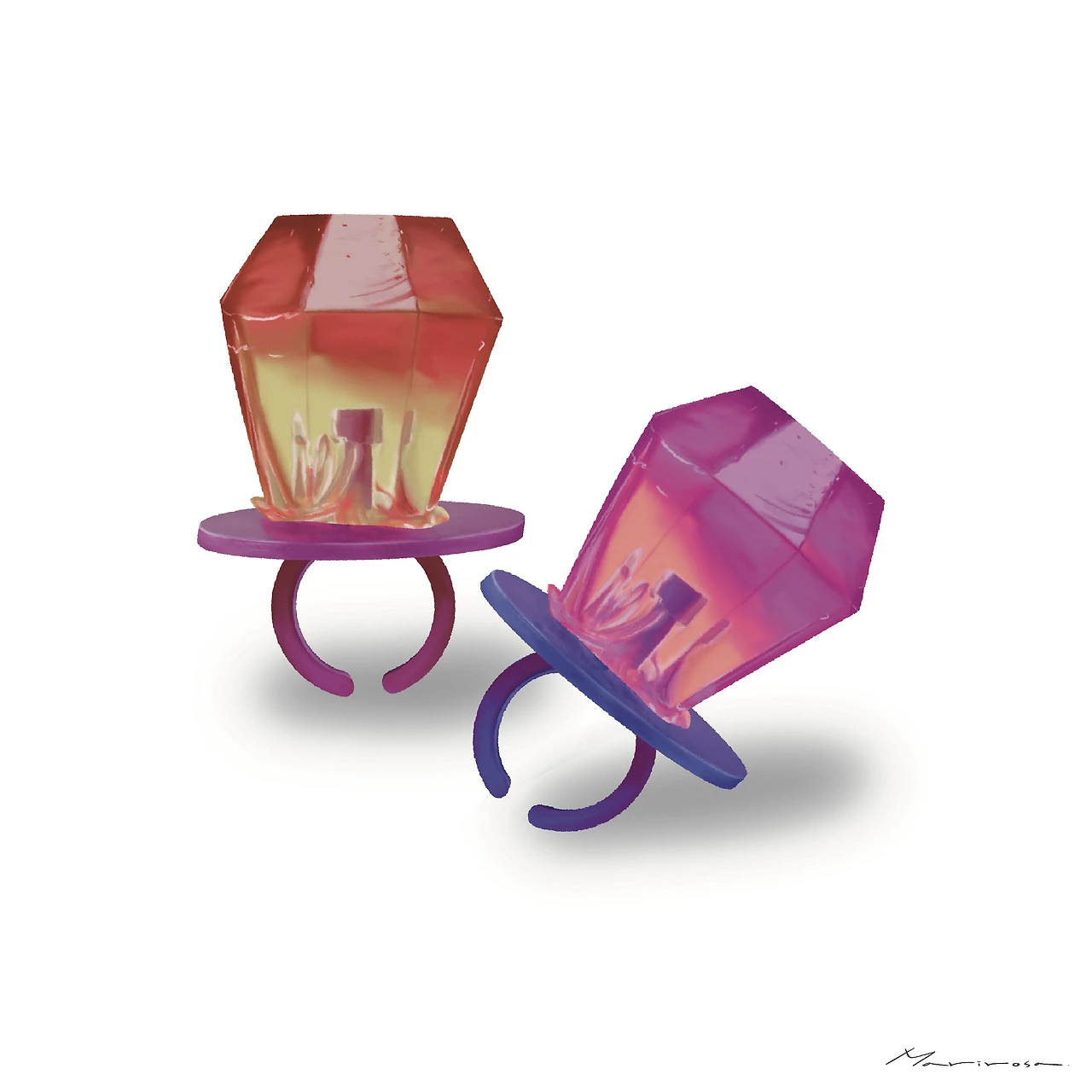그래서 보석 반지 사탕을 손가락에 낀 채로