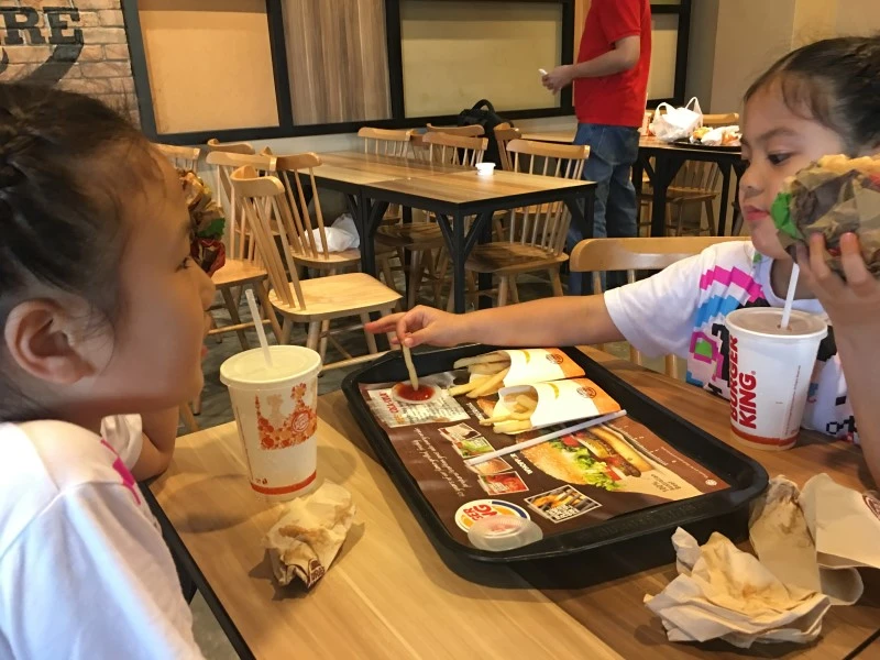 홈페이지에서 확인한 영업 종료시간에 맞춰 픽업 차량을 7:40으로 예약했기에, 아직 픽업 차량 올 시간까지 1시간 40분이나 남았다. 너무 이른 퇴장에 어떻게 할까 멍하게 있는데, 마침 아이들이 배고파한다. 출구 앞에 있는 식당들을 쭉 돌아보고 결국 맛을 가장 잘 예견할 수 있는 버거킹에 들어갔다.