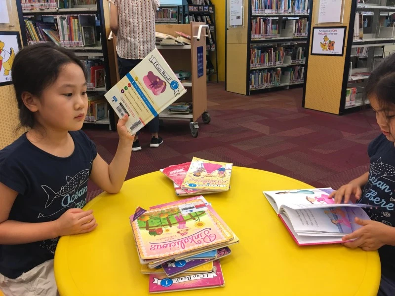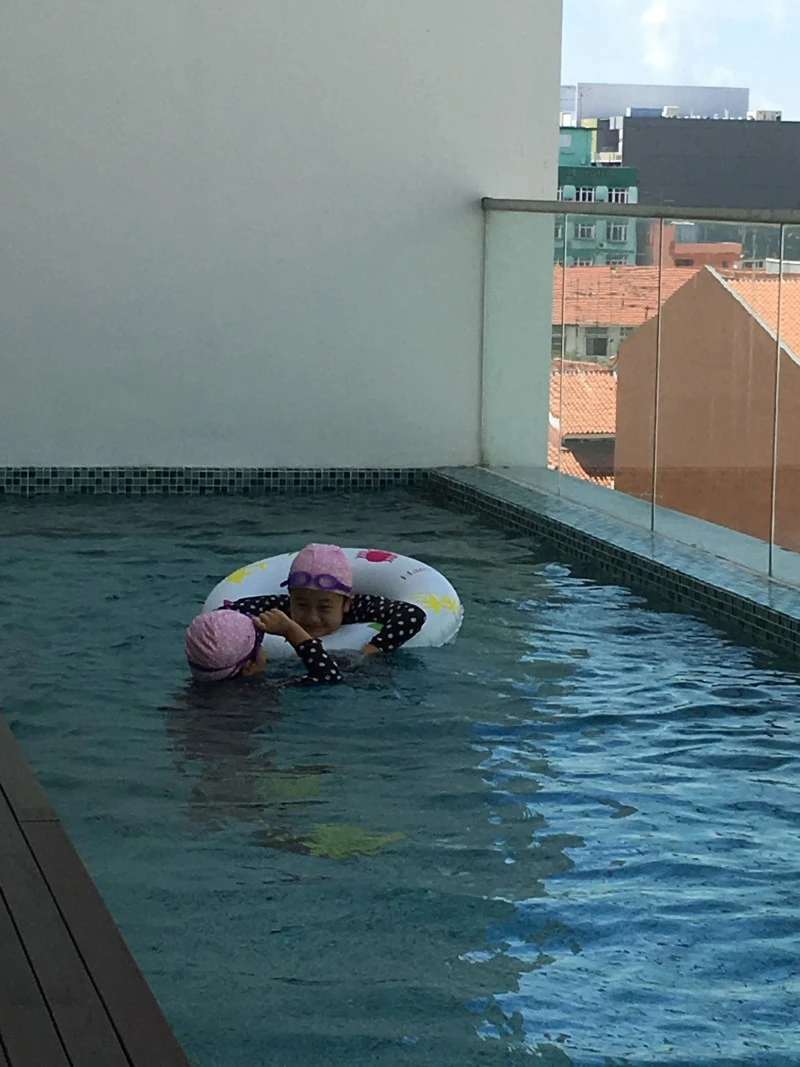 도서관에 가기 전 오늘도 아이들은 아파트 수영장에서 둘만의 놀이시간을 가졌다. 그리고 아카펠라 체험 시간보다 조금 일찍 도서관에 갔다.
