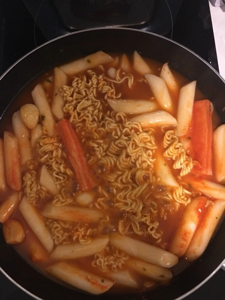그리고 떡볶이에 대한 그리움, 고추장도 없고, 어묵도 없지만 라면을 넣어 만든 라볶이로 달랬다.