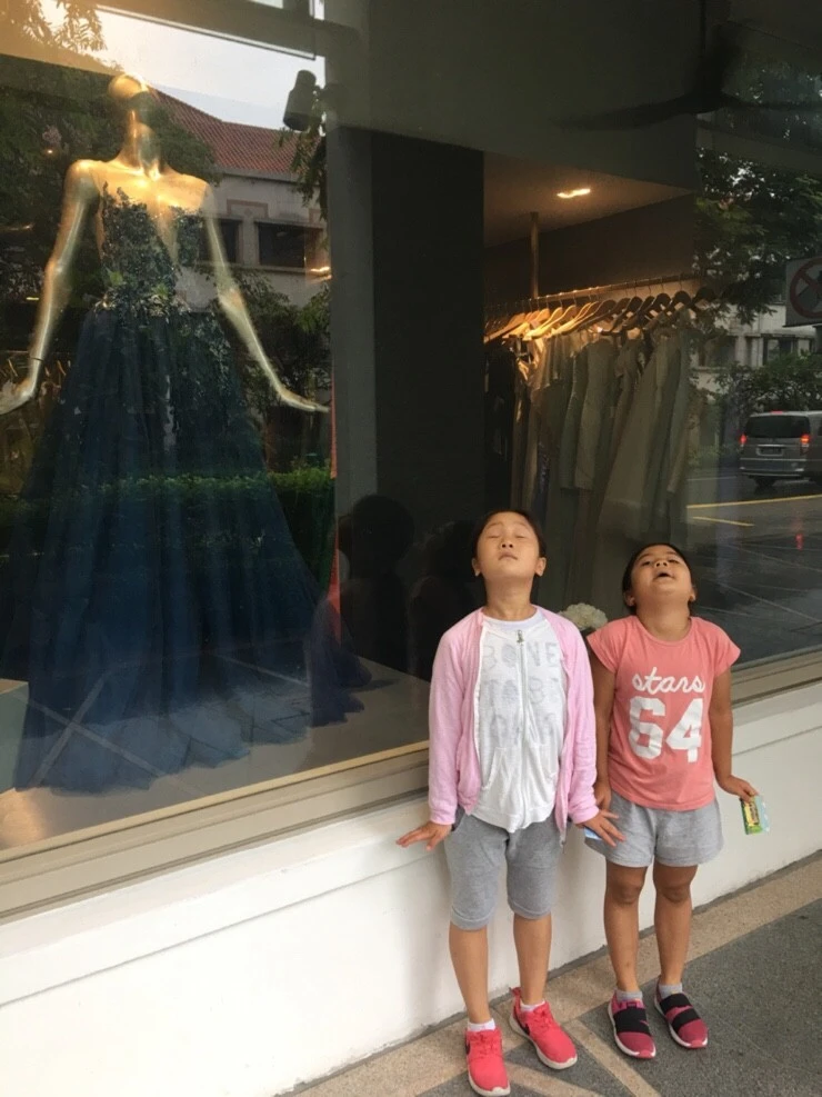 길을 가다 돌아보니 아이들이 쇼윈도 앞에 멈춰서 있다. 고개를 치켜든 마네킹 모습이 인상적인가 보다. 지나치지 않고 따라 해 준 아이들 모습 덕분에 먼저 그 앞을 지나온 내 눈에도 마네킹이 들어왔다.
