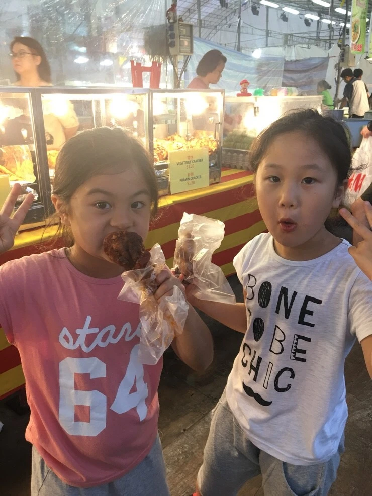 폐장시간이 됐지만 아이들은 여전히 더 놀고 싶은 마음인 것 같다. 아쉬운 마음이 큰 것 같아 야외 오픈 체험장에서 이것저것 좀 더 체험했다. MRT 역으로 가는 길, 여러 가지 물건을 파는 만물 가게가 보인다. 자연스레 안으로 들어가 구경했다. 아이들은 고르고 골라, 작은 큐브 열쇠고리를 샀다. 재래시장은 먹거리 천국이다. 아이들은 각자 원하는 맛의 닭다리 하나씩 골라 먹었다. 아이들은 맛있는 음식 하나만 있어도 세상을 다 얻은 듯 행복해 보인다.