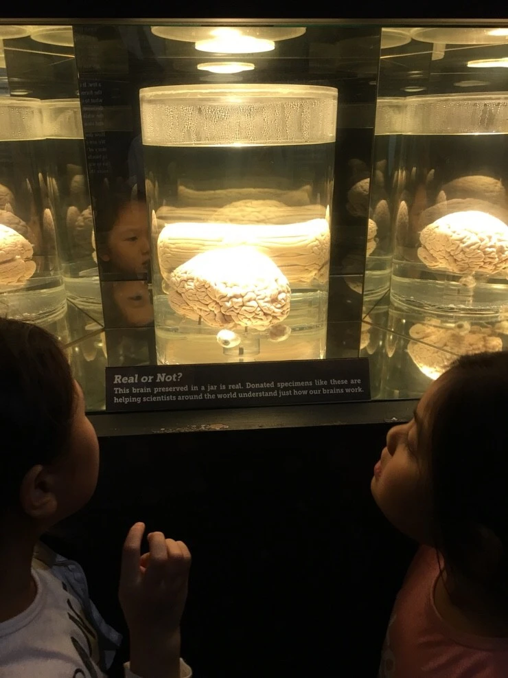4D 체험을 하고 있는데 폐장 안내가 나온다. 아직 다 눌러보지 못해 아쉽지만 서둘러 나왔다. 나오는 길, 뇌가 담겨있는 유리관에 시선이 빼앗겼다. 과연 우버 기사가 추천한 대로 아이들이 좋아했다. 지난번 왔을 때, 외부에 설치된 물놀이 시설 waterwork를 봤다. 과학 체험 시설인데 물로 꾸며져 있어 아이들에게 더욱 흥미를 끌었던 곳인데, 실내에서 들어갈 수 있어 오늘 오면 꼭 즐기기로 했는데, 비 때문에 운영을 안 한다.