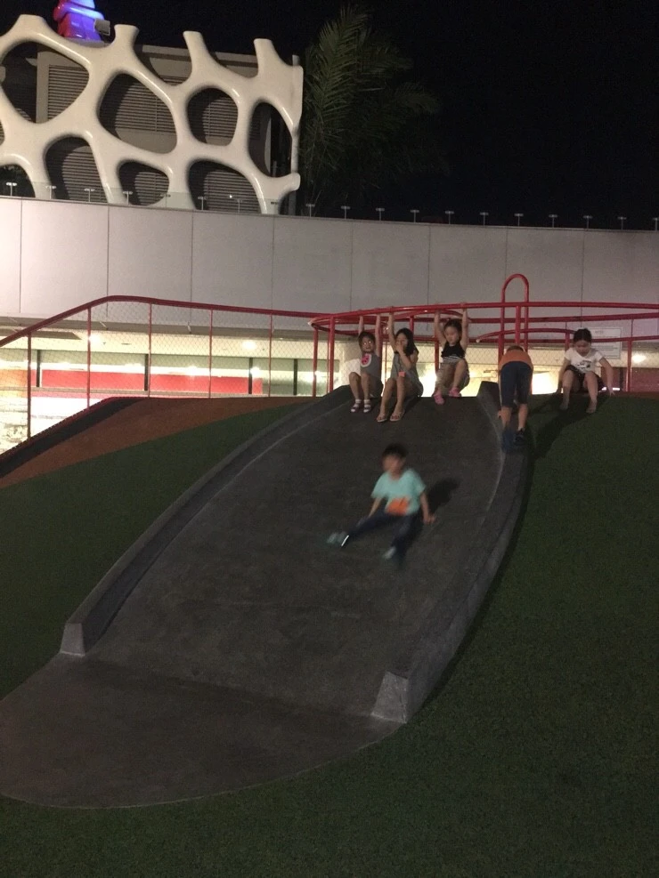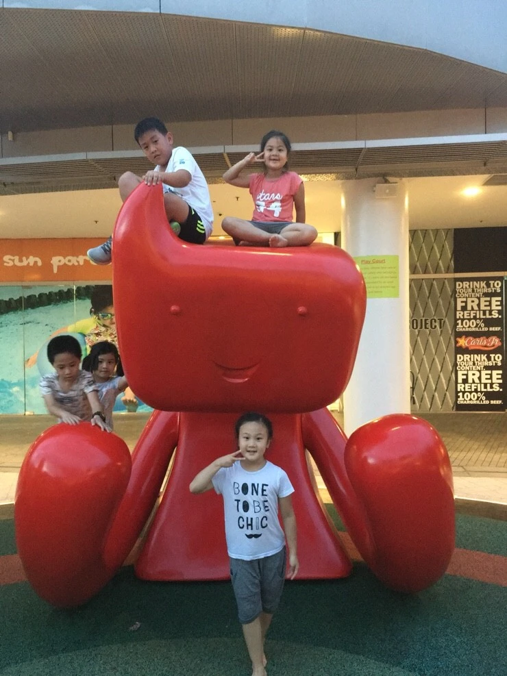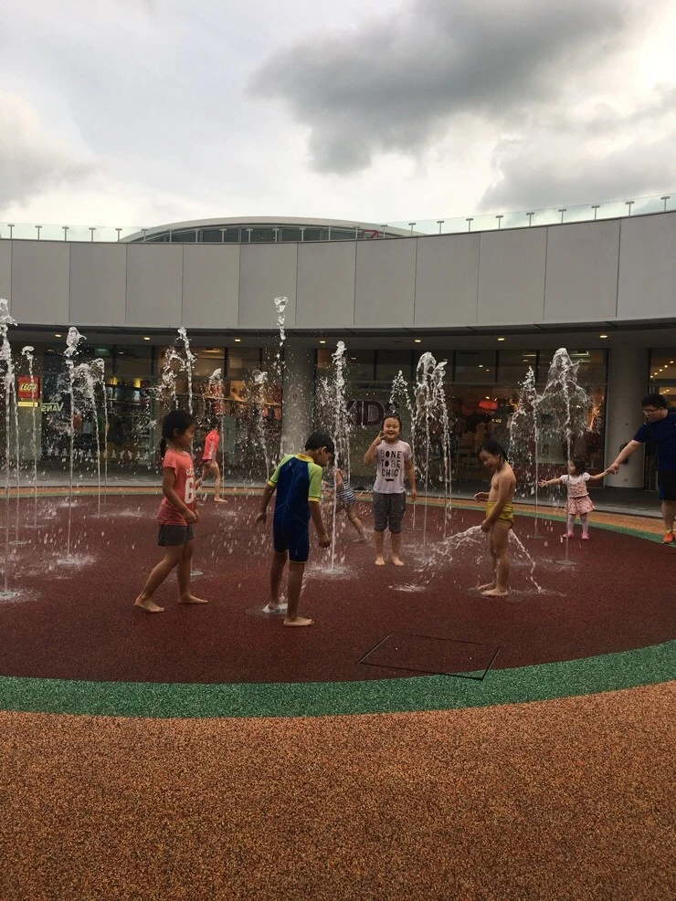 분수뿐만 아니라 조형물에도 아이들이 많다. 우리 아이들도 오르려고 하니, 먼저 올라가 있는 싱가포르 남자아이가 매너손을 내밀어준다. 손 내밀어준 싱가포르 오빠와 함께 놀다가, 다시 우리 아이들 둘이서 놀다가 또 다른 한국 언니를 만나서 같아 놀다가, 그렇게 아이들은 금세 어울려 논다.