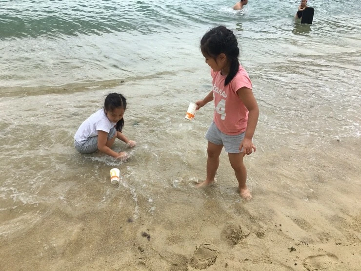 오늘은 팔라완 비치 분수 놀이터가 ‘청소 중’이라고 이용을 제한해 놓았다. 아쉽다!! 그래도 아이들은 금세 상황 파악하고 모래 사변으로 가서, 일회용 컵만 들고도 한 참 놀아준다.